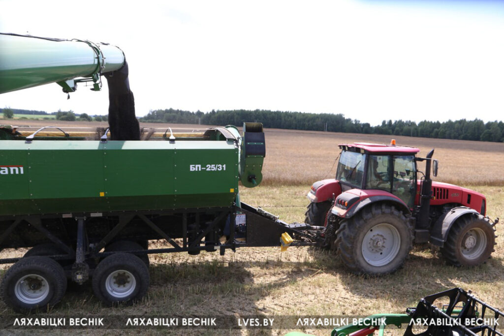 Першы погляд, як правіла, заўважае нешта нетрывіяльнае. У звыклай, увогуле, жніўнай кругаверці камбайнаў, аўтамабіляў-адвозчыкаў сабранага ўраджаю адметнасцю падаўся так званы бункер-перагрузчык. Прычэп да трактара, функцыянальна спецыялізаваны на «адборы» насення-зерня-збожжа з-пад камбайна, дастаўцы ўраджаю на край уборачнага палетка і перагрузцы яго ў аўтамабіль. Чаму не напрамую з камбайна ў аўтамабіль? Аграном ЗАТ «Фораланд» Аляксандр Кажакар тлумачыць: