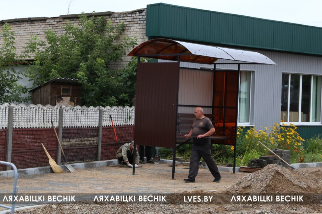 Также плиткой уложена пешеходная дорожка. Сегодня установлена новая автобусная остановка.
