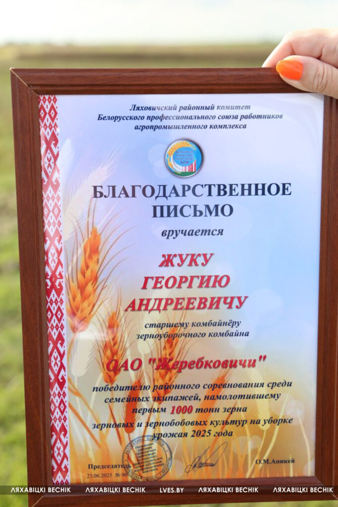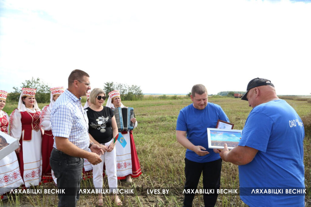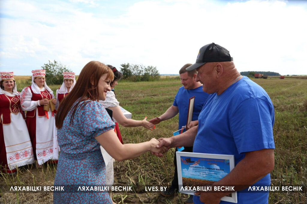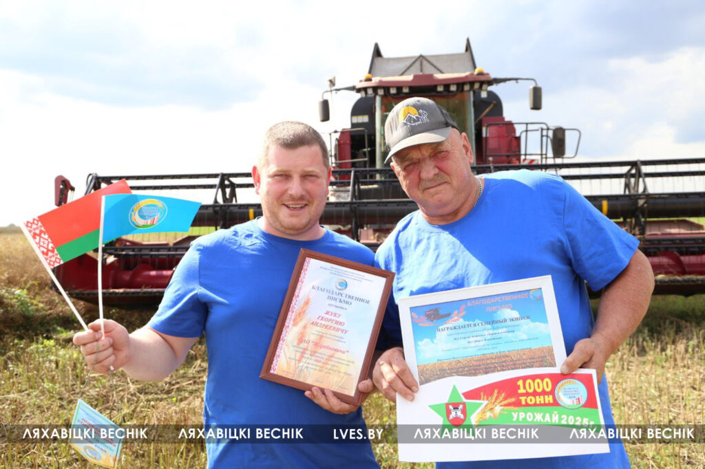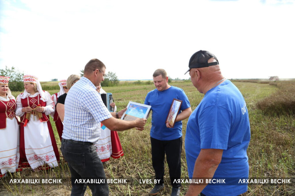 В Ляховичском районе чествовали семейный экипаж, который первым намолотил тысячу тонн зерна