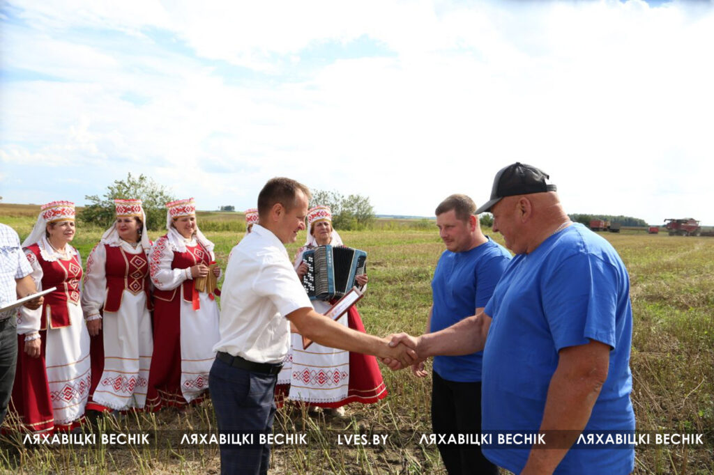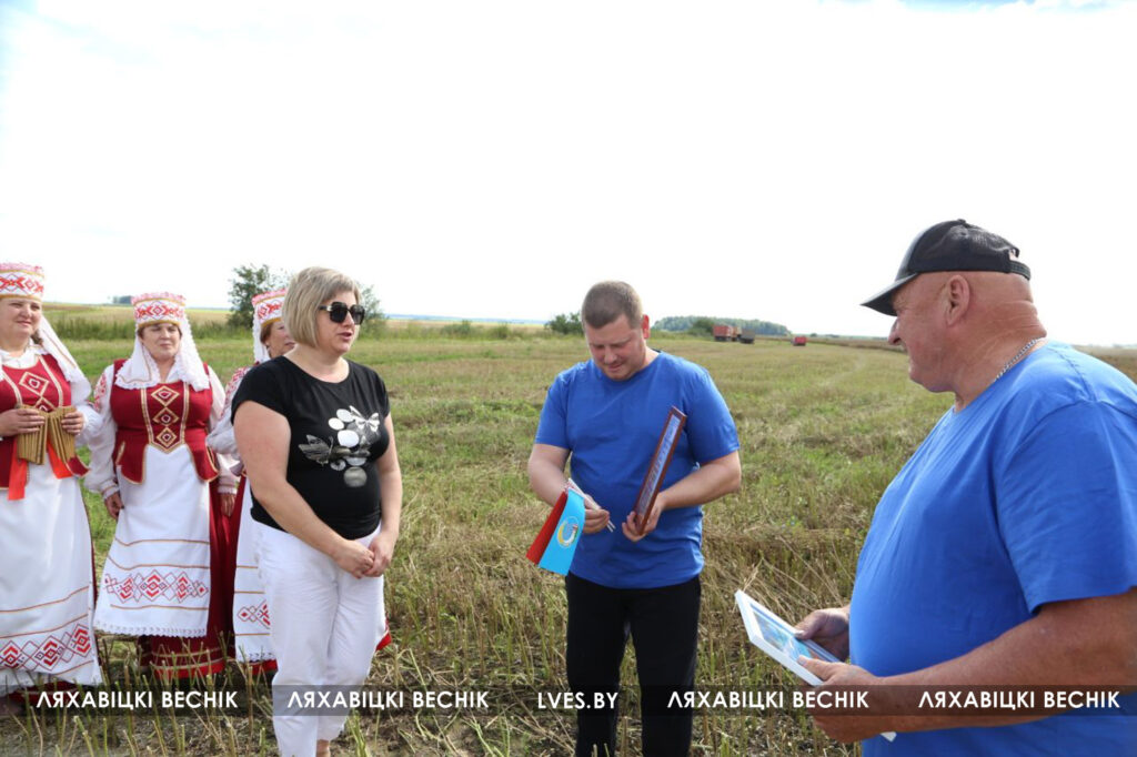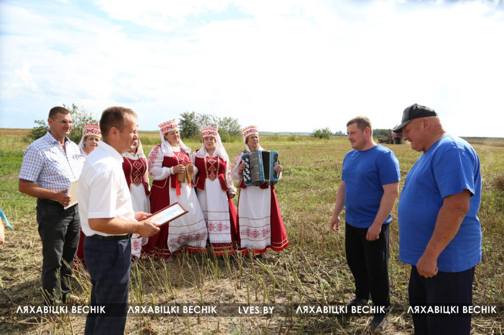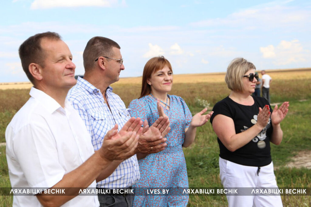Поздравить их прямо в поле приехали первый заместитель председателя Ляховичского райисполкома — начальник управления по сельскому хозяйству и продовольствию Василий Пыжик, директор ОАО «Жеребковичи» Андрей Новик, представители райсельхозпрода и профсоюзов.