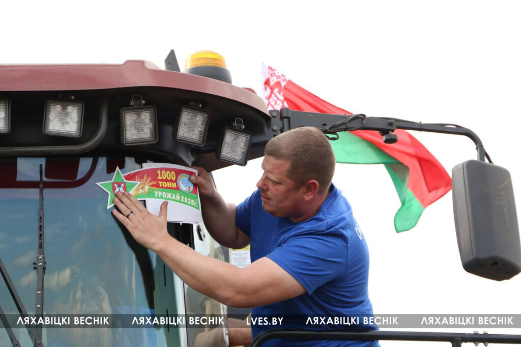 Поздравления с первой тысячей, пожелания трудовых успехов, подарки и песни в честь передовиков — и экипаж снова в уборочном строю. Жатва не ждёт!
