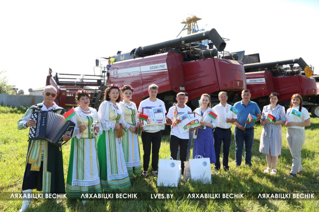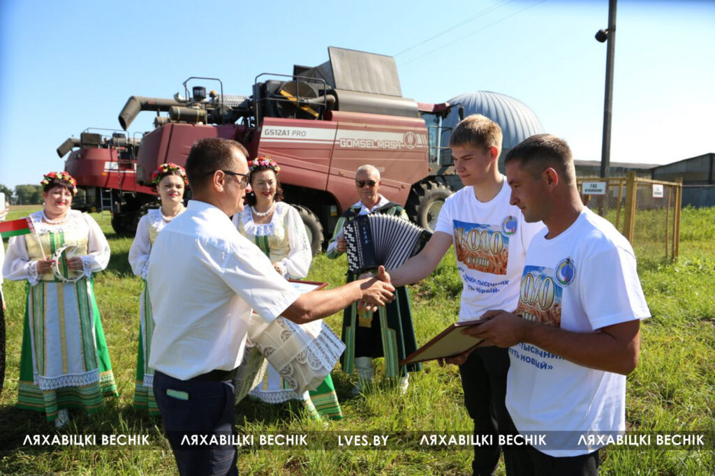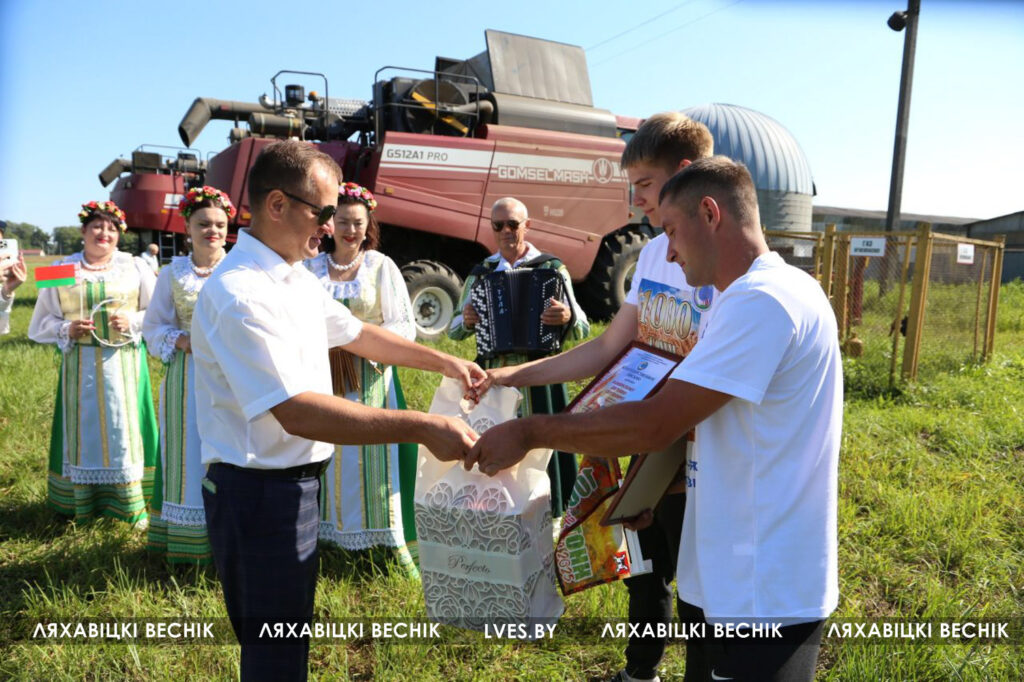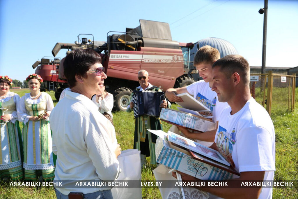 Сегодня перед началом трудового дня экипаж принимал поздравления и подарки от первого заместителя председателя Ляховичского райисполкома — начальника управления по сельскому хозяйству и продовольствию Василия Пыжика, директора ОАО «Путь новый» Андрея Коктыша, представителей райсельхозпрода, профсоюзов и районной организации .