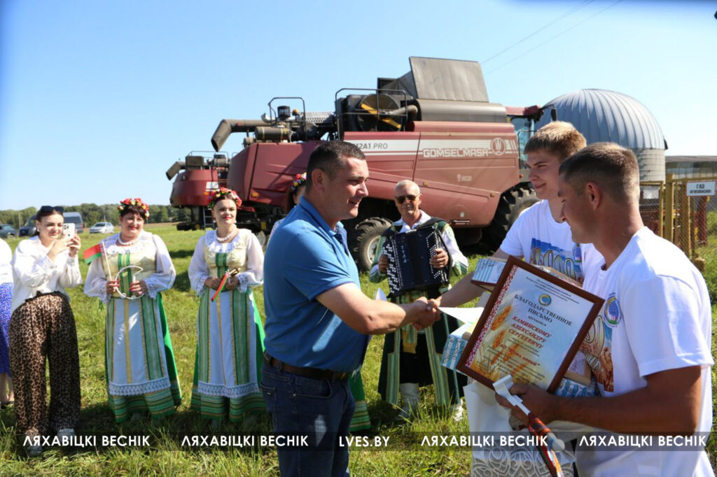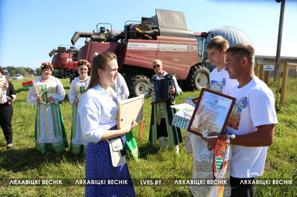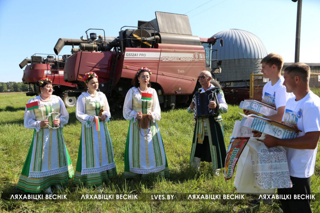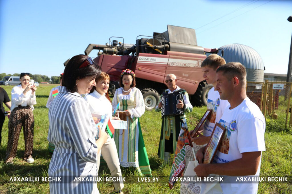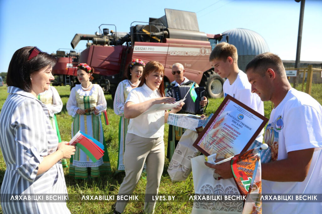 Сегодня перед началом трудового дня экипаж принимал поздравления и подарки от первого заместителя председателя Ляховичского райисполкома — начальника управления по сельскому хозяйству и продовольствию Василия Пыжика, директора ОАО «Путь новый» Андрея Коктыша, представителей райсельхозпрода, профсоюзов и районной организации .