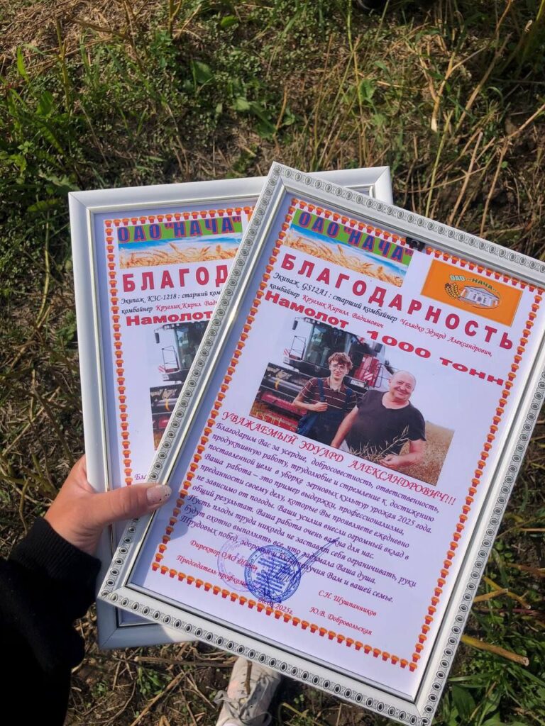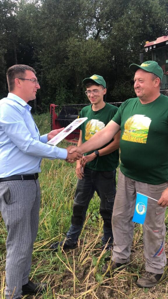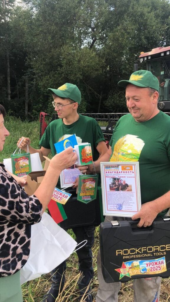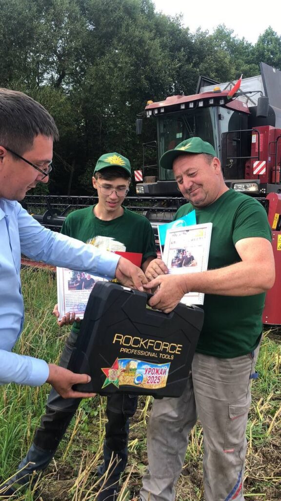 Передовиков жатвы поздравили директор ОАО Сергей Шушпанииков, председатель профкома Юлия Добровольская. Комбайнеров наградили прямо в поле благодарностью, ценными подарками с логотипом предприятия.
