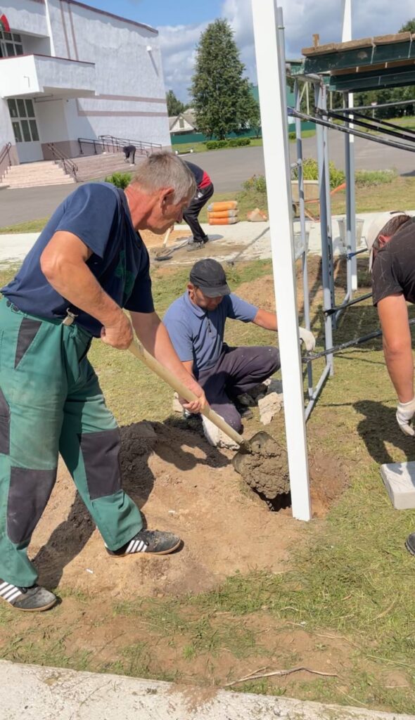Сегодня конкурсную работу устанавливали представители ОАО «Путь новый». В разгар жатвы передовое хозяйство нашло время и возможности для того, чтоб внести достойный вклад в благоустройство территории агрогородка.