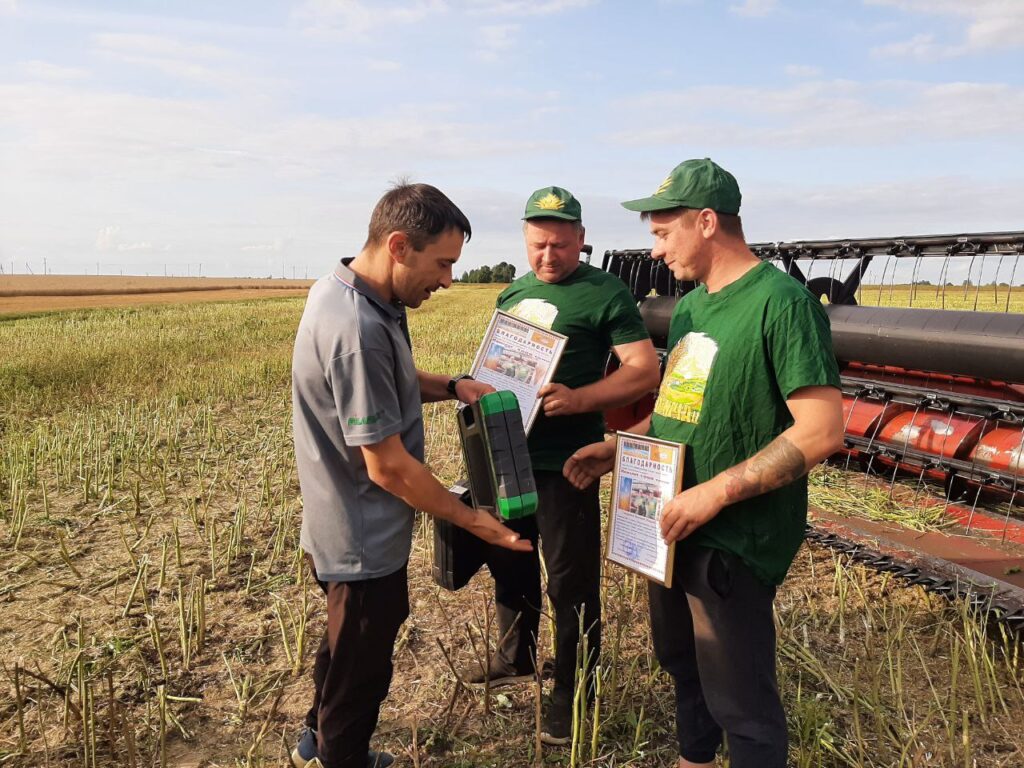 Заветный рубеж в намолоте 1000 тонн сегодня преодолел экипаж КЗС-1218 А — Виталий Васюкевич и Валентин Кислюк.