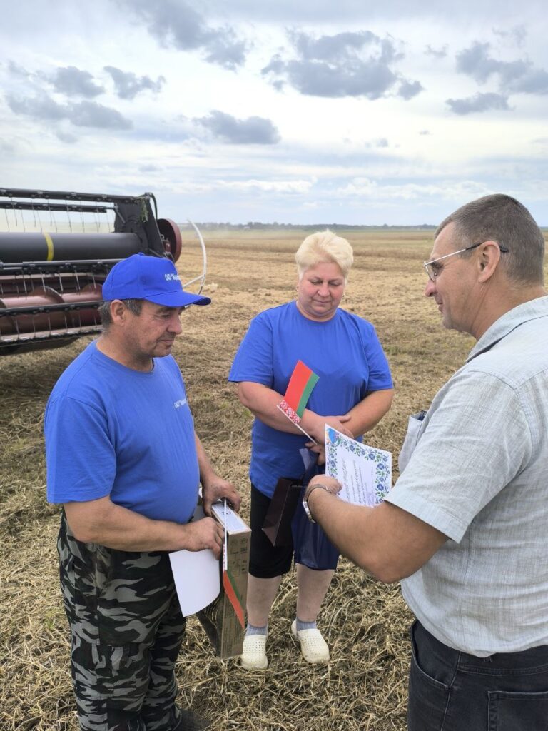 И снова в Ляховичском районе поздравления хлеборобам звучали прямо в поле
