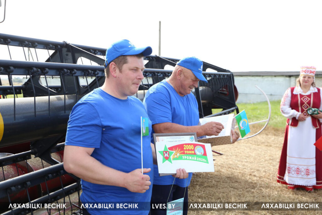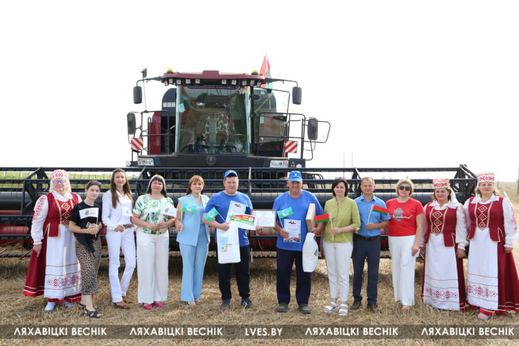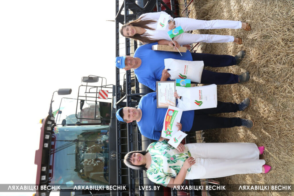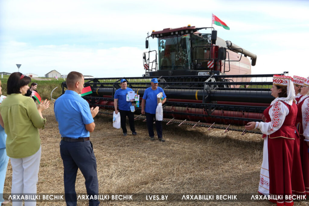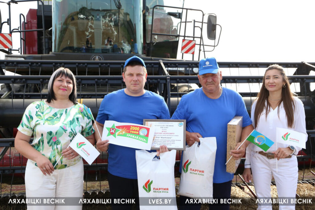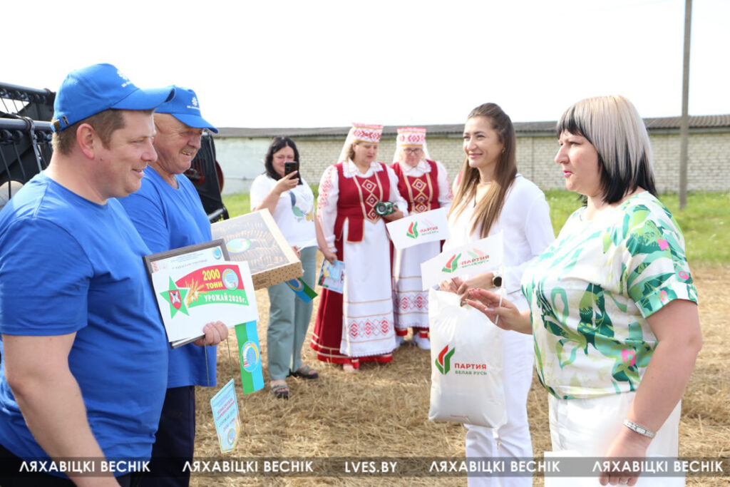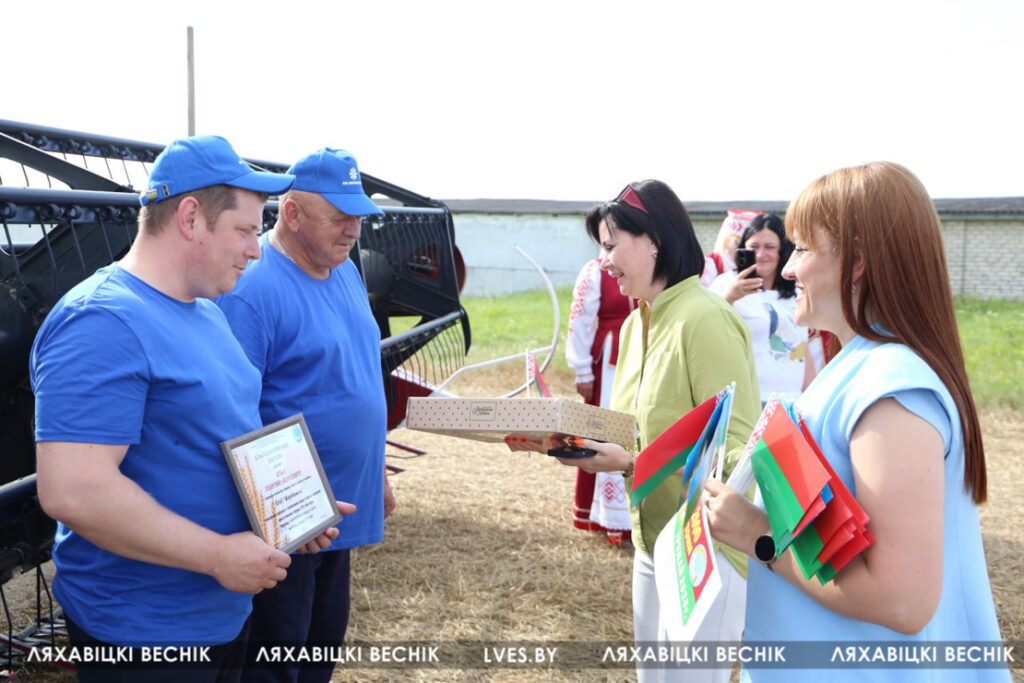 Первый заместитель председателя Ляховичского райисполкома — начальник управления по сельскому хозяйству и продовольствию Василий Пыжик, представители райсельхозпрода и профсоюзов, районного отделения партии «Белая Русь» и хозяйства чествовали передовиков, вручали подарки и желали новых побед на жатве и не только.