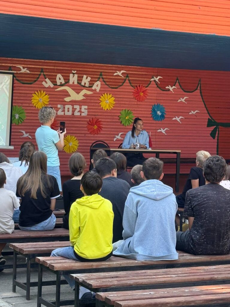 Сегодня в оздоровительном лагере «Чайка» в рамках республиканской акции «Шаг к успеху» состоялась встреча с делегатом Всебелорусского народного собрания Маргаритой Кухта-Масловской