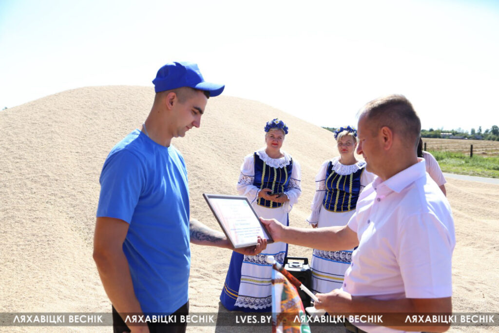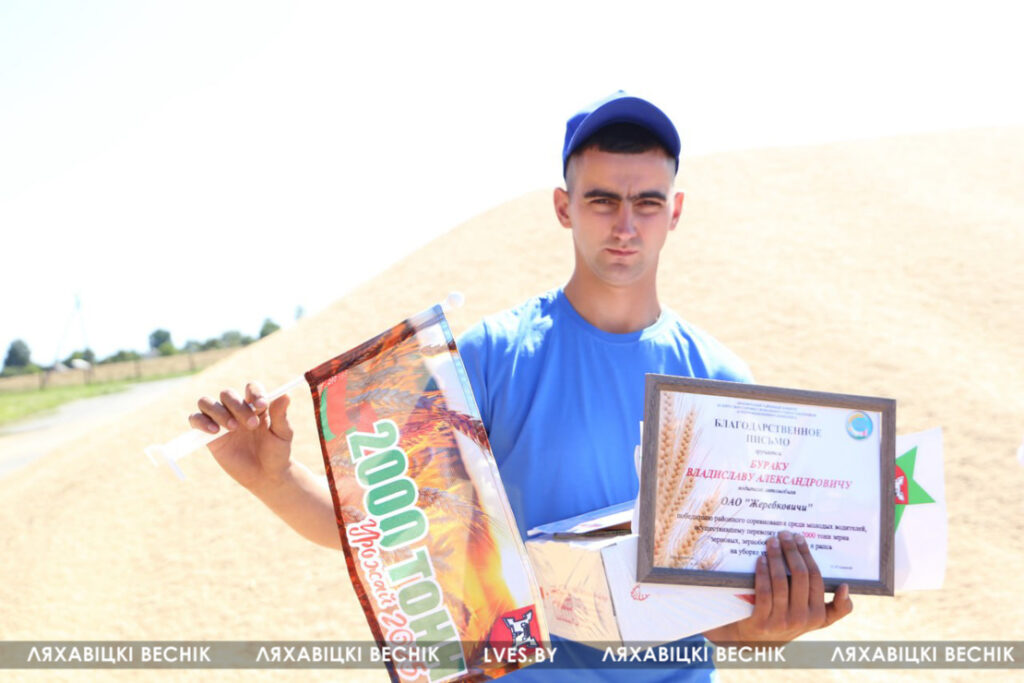 Зерно – на вес золота. Убрать урожай без потерь спешат хлеборобы, а водители — оперативно увести с поля. В ОАО «Жеребковичи» сегодня чествовали молодого водителя -двухтысячника.