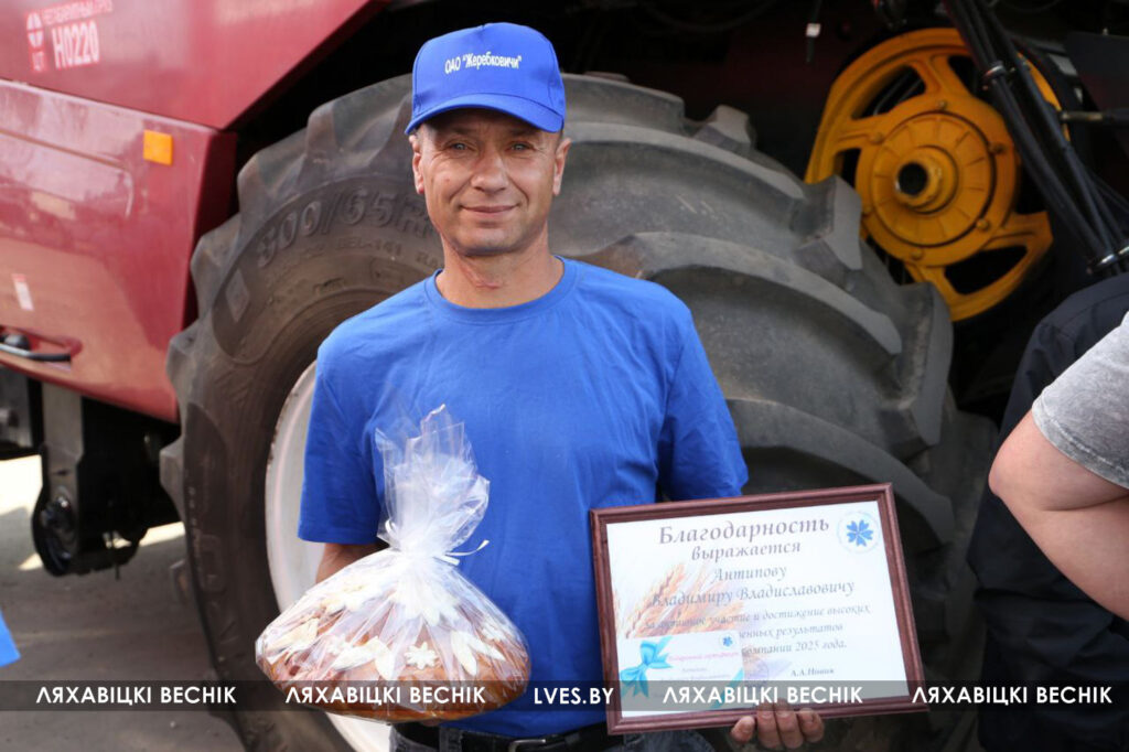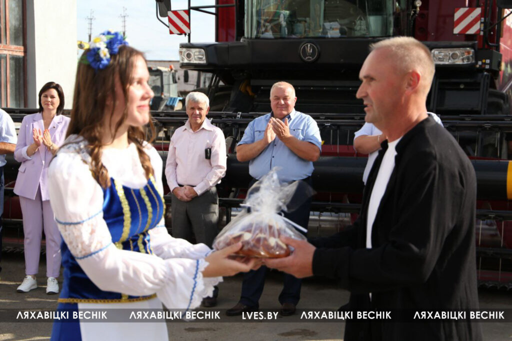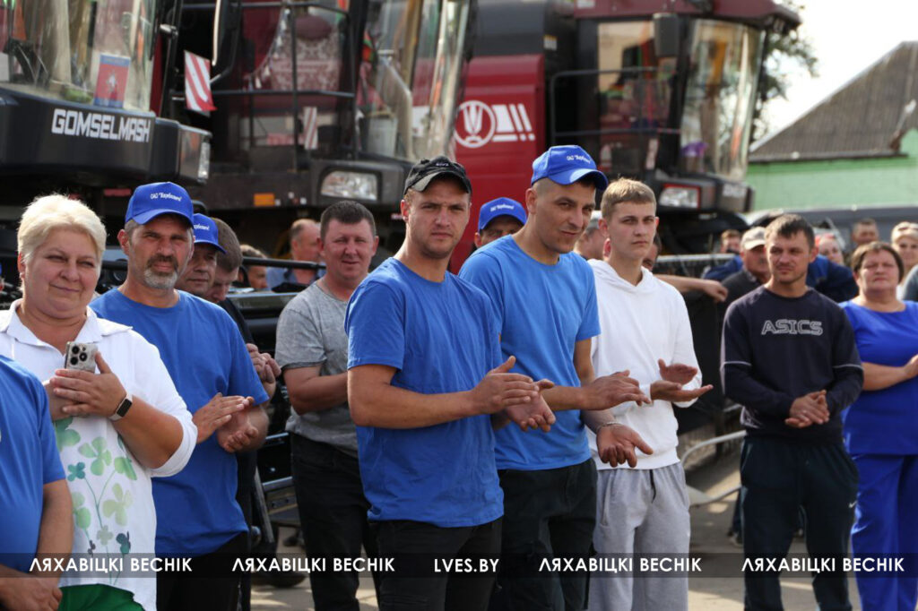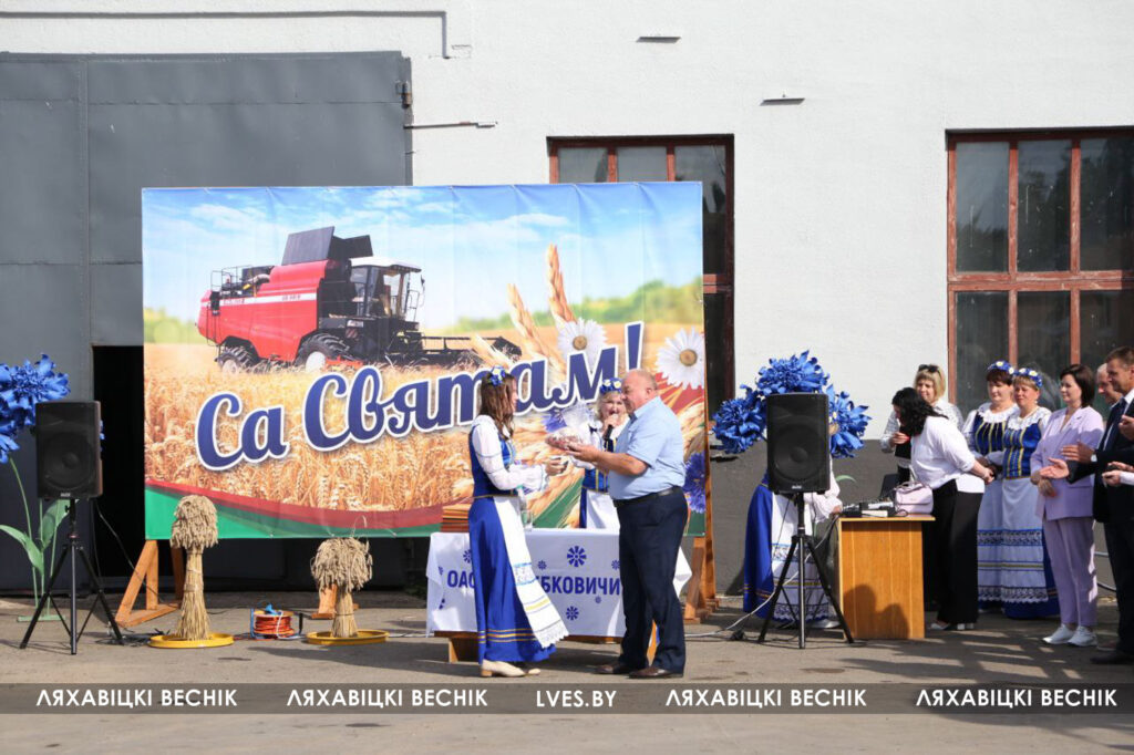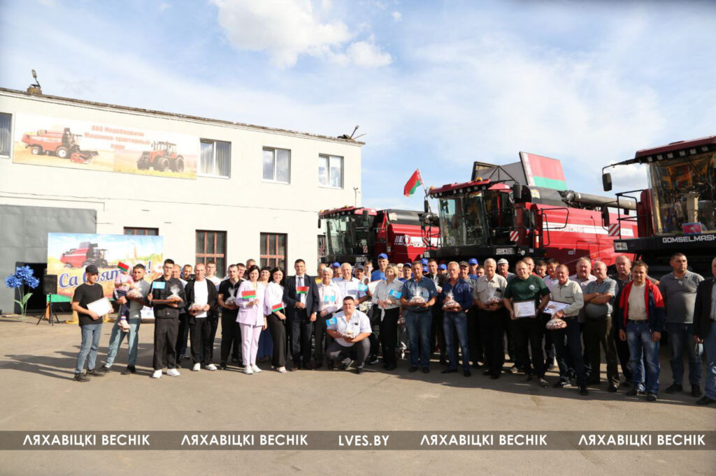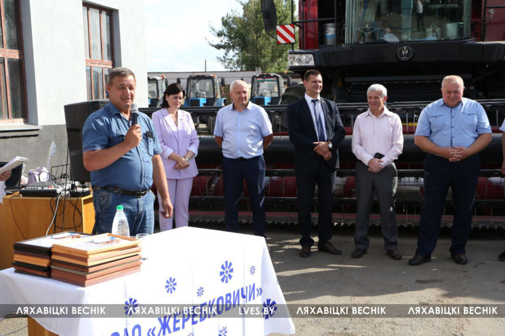 На мехдворе в Жеребковичах работников сельхозпредприятия — участников жатвы чествовало руководство хозяйства и райсельхозпрода.