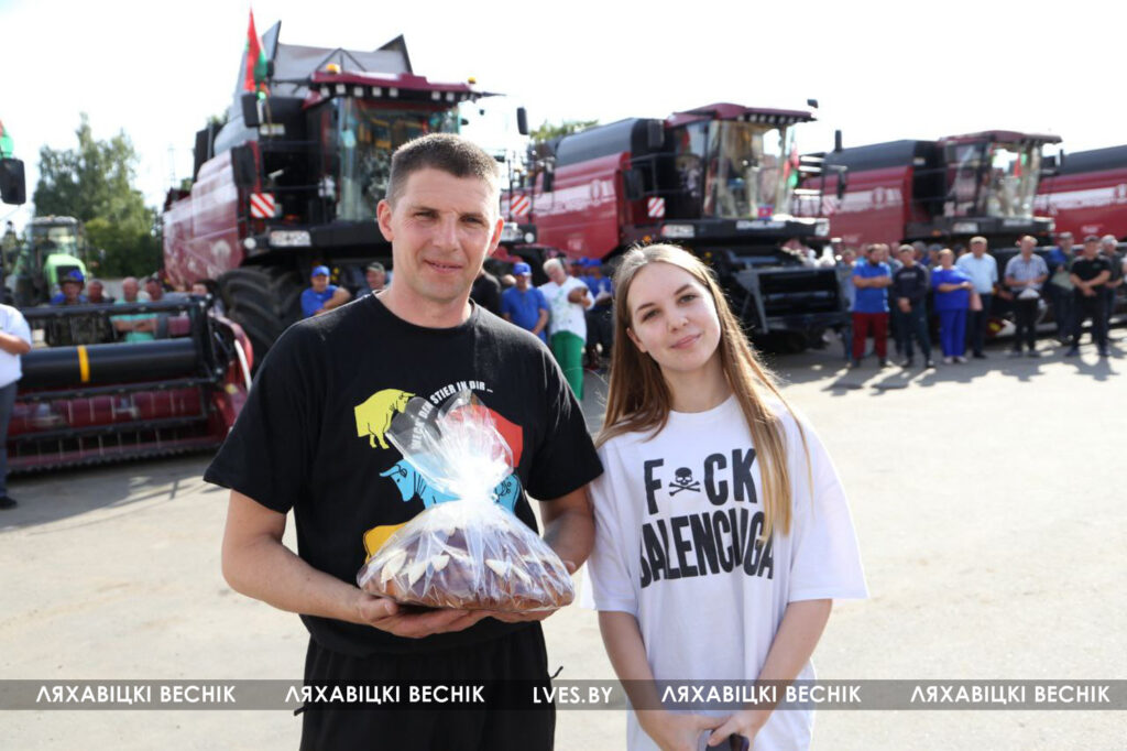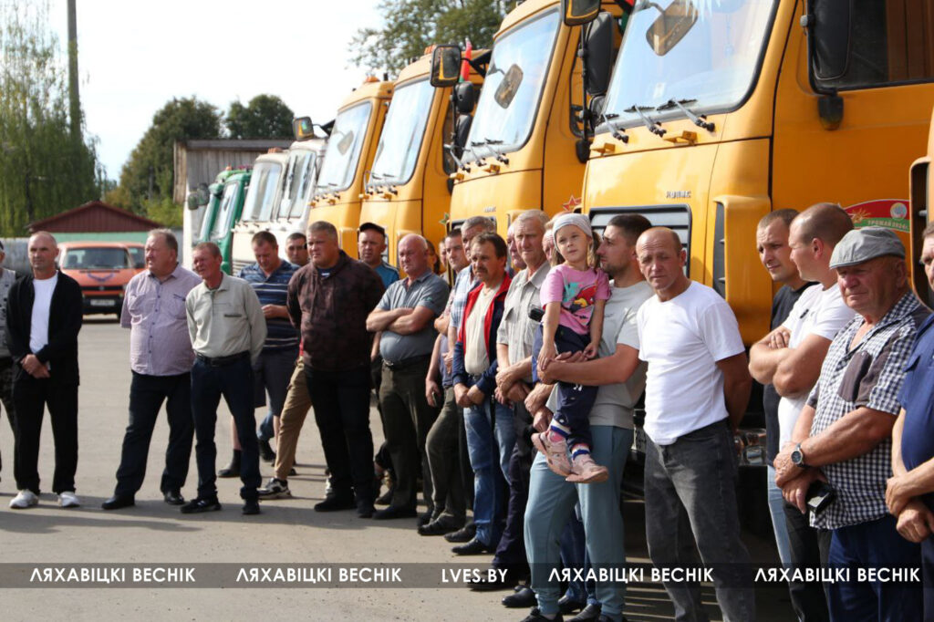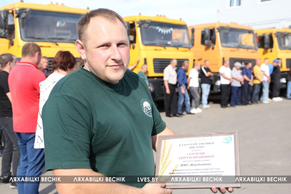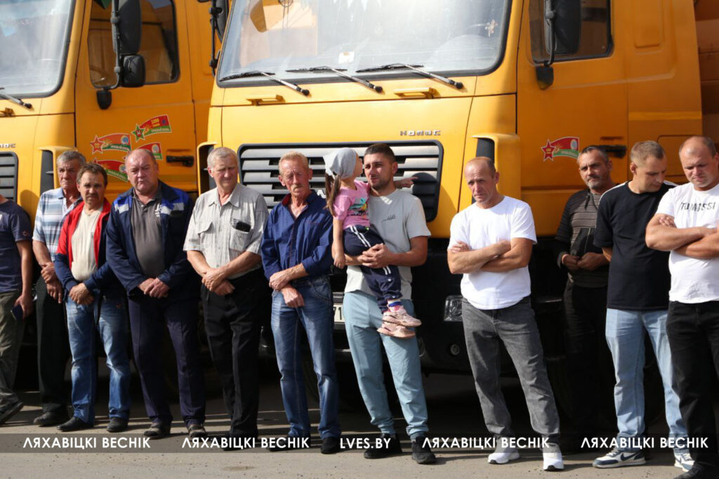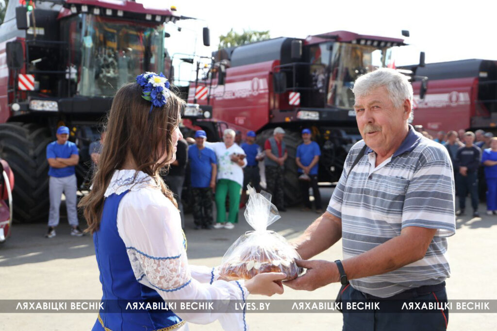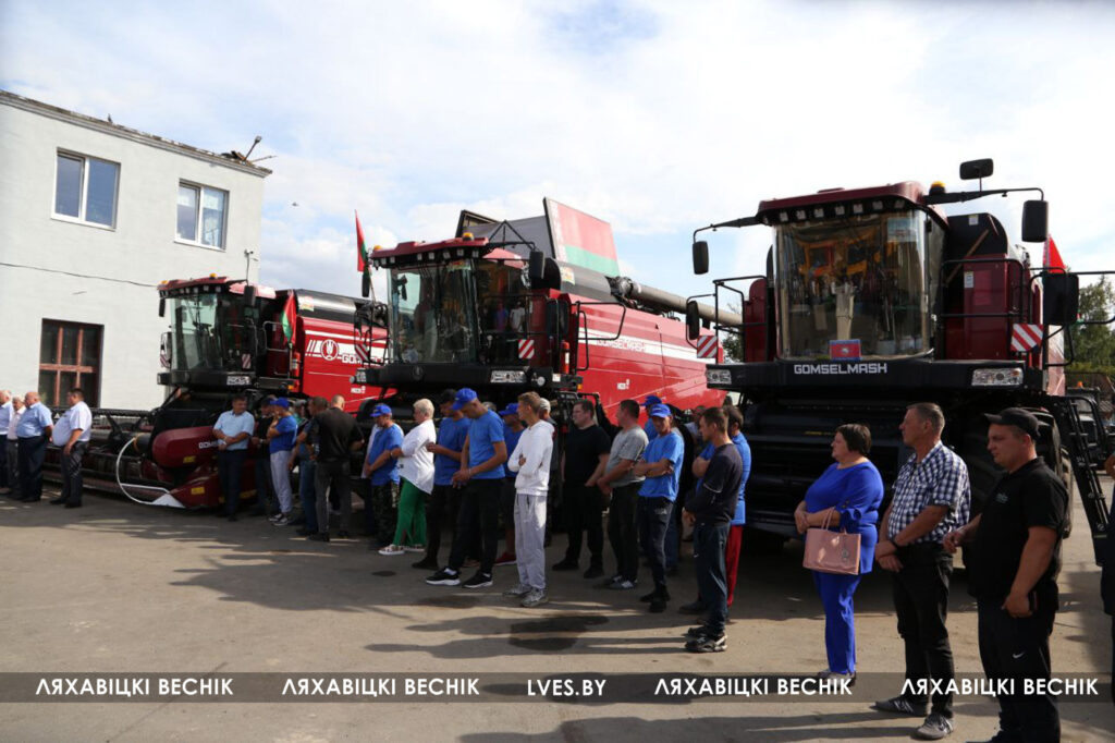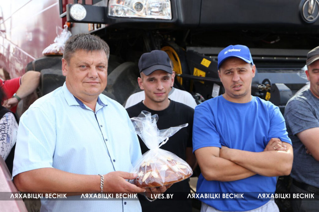 На мехдворе в Жеребковичах работников сельхозпредприятия — участников жатвы чествовало руководство хозяйства и райсельхозпрода.