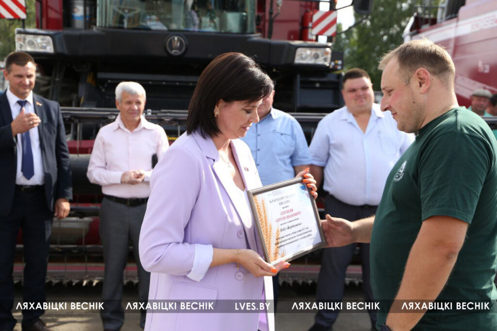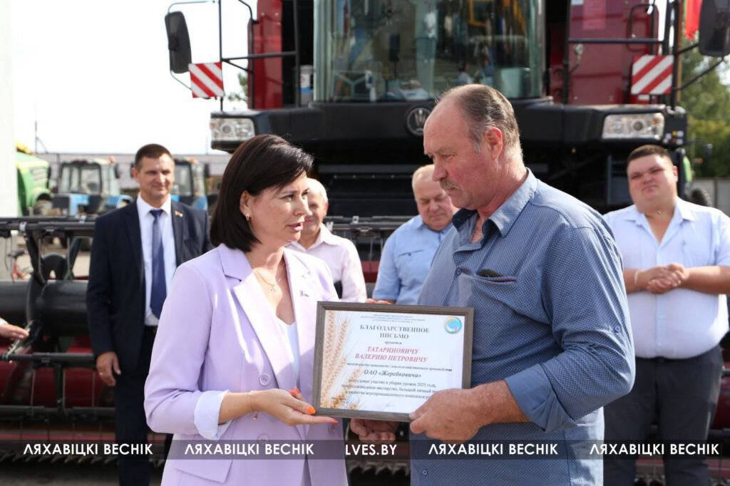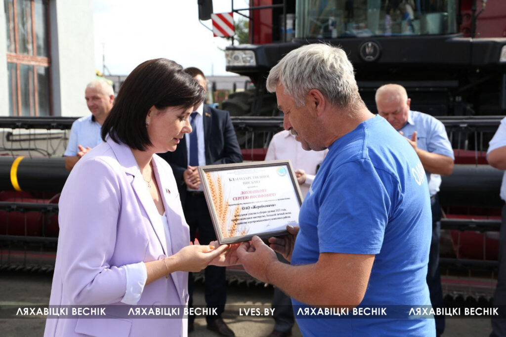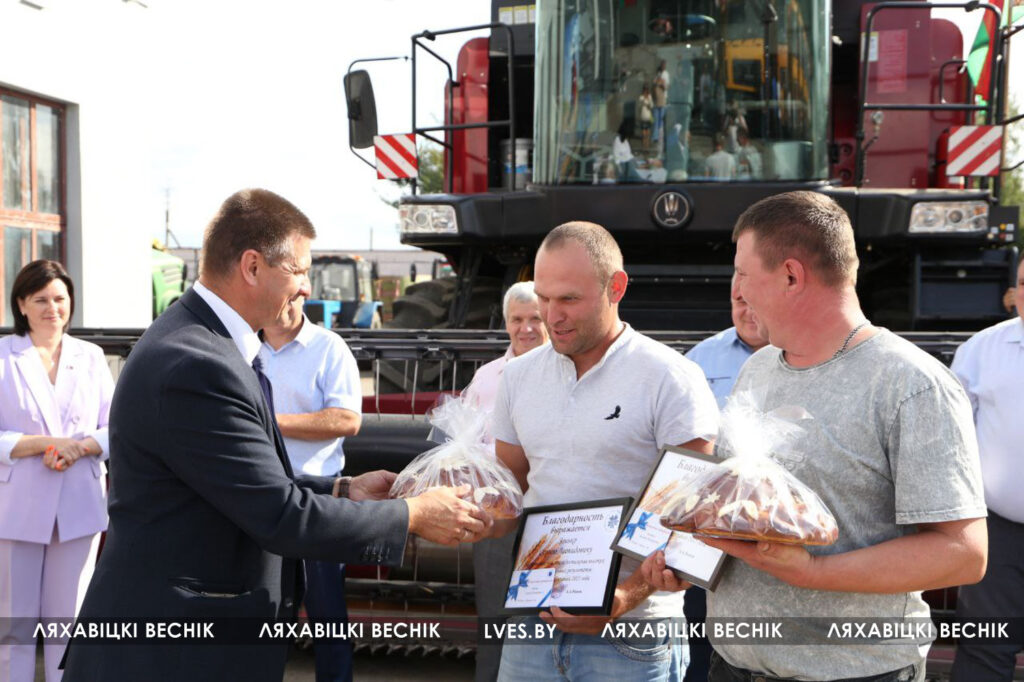 Награды и подарки труженикам хлебной нивы вручили директор ОАО Андрей Новик и заместитель начальника управления по сельскому хозяйству и продовольствию райисполкома Наталья Гринкевич