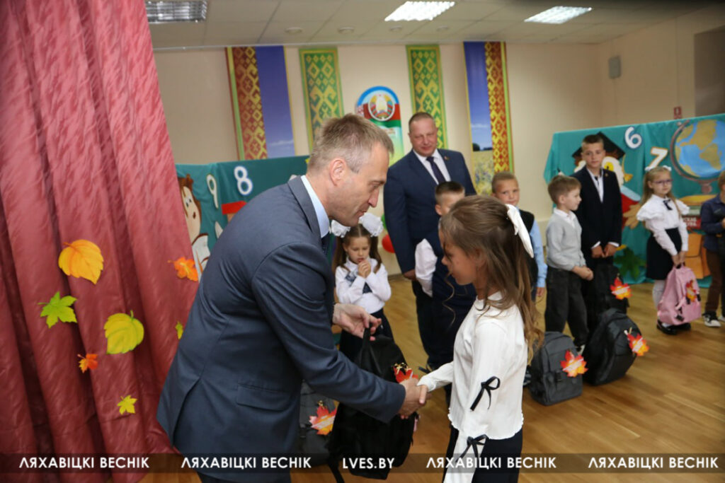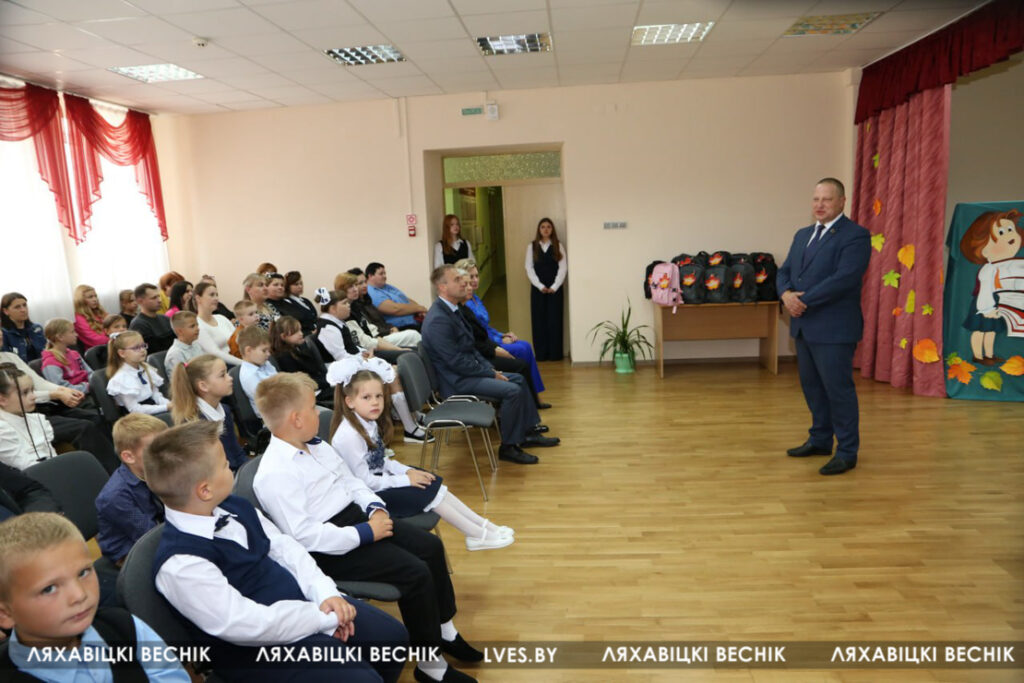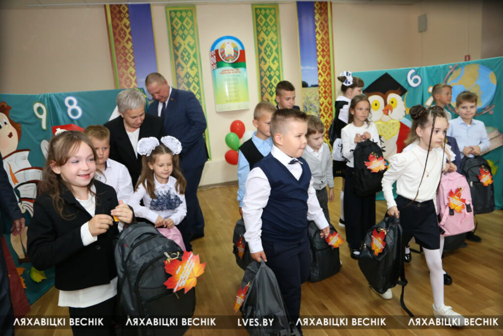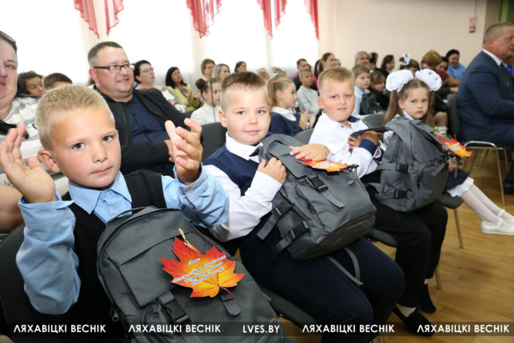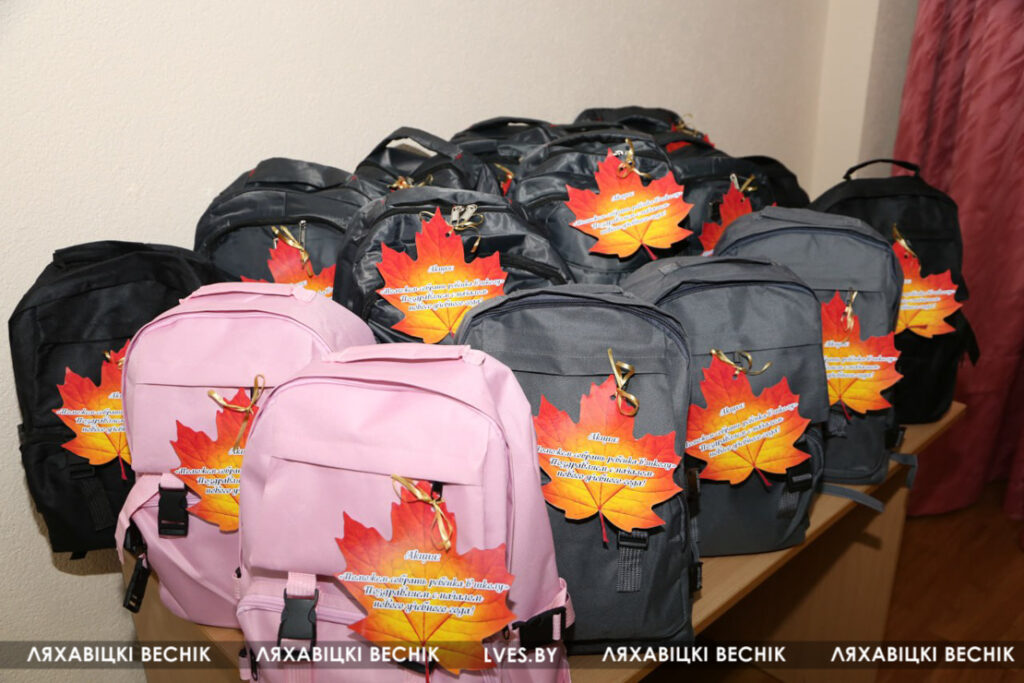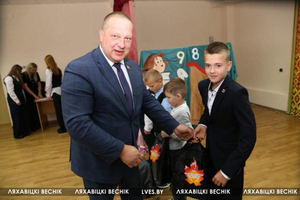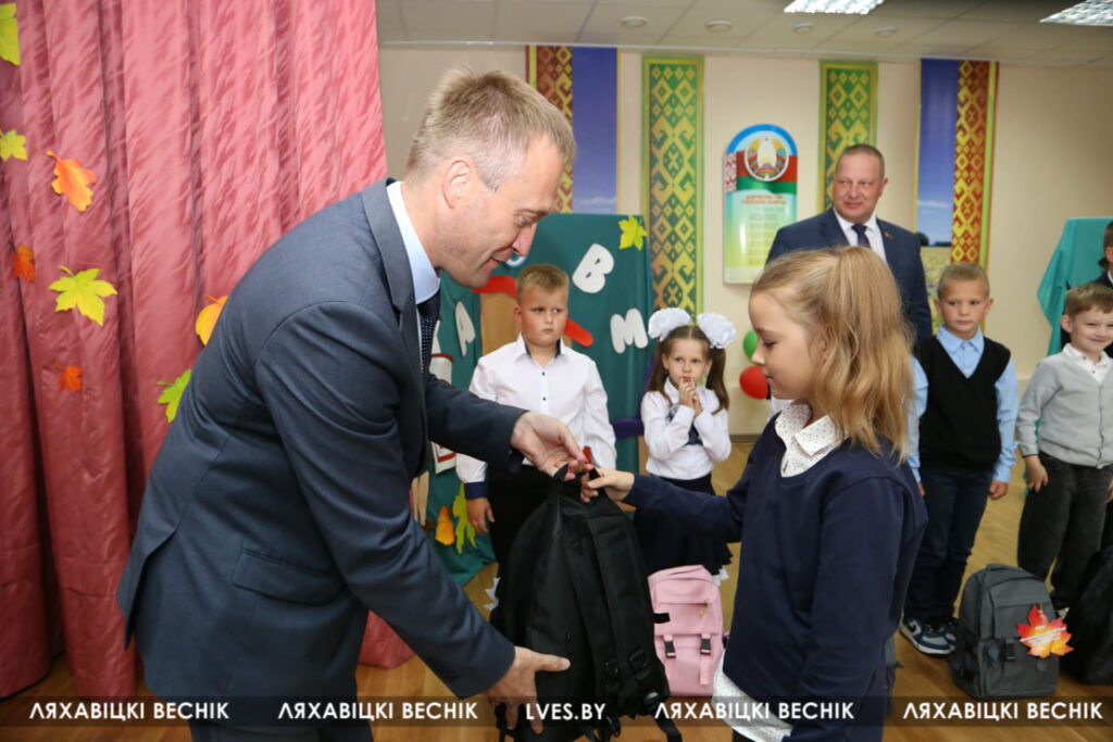 Председатель Ляховичского райисполкома Николай Мороз и заместитель председателя райисполкома Олег Третьяк вручили мальчикам и девочкам школьные ранцы с канцелярскими принадлежностями.