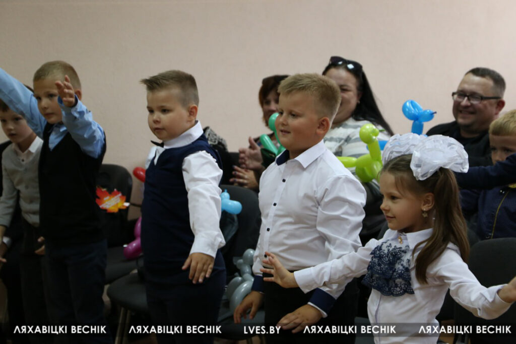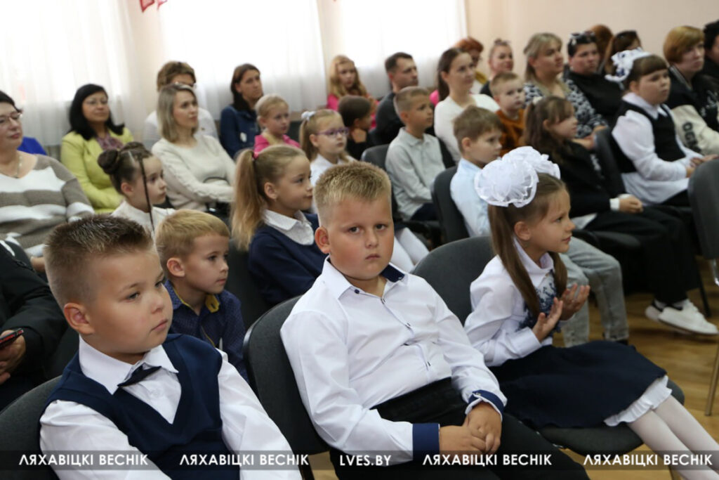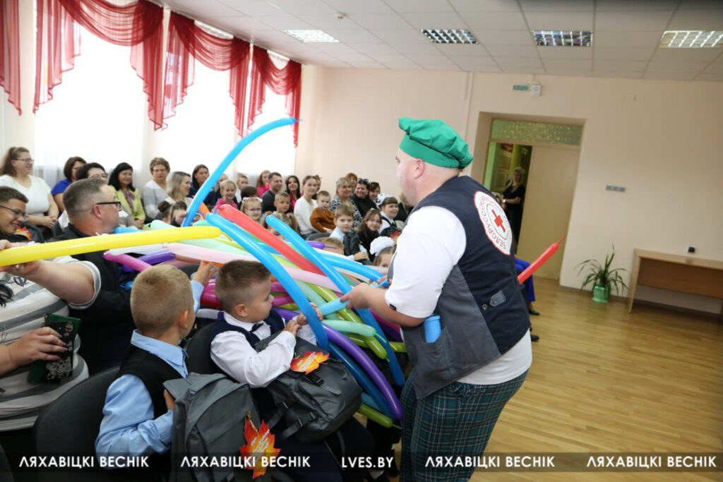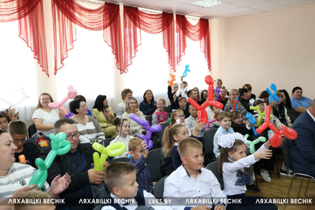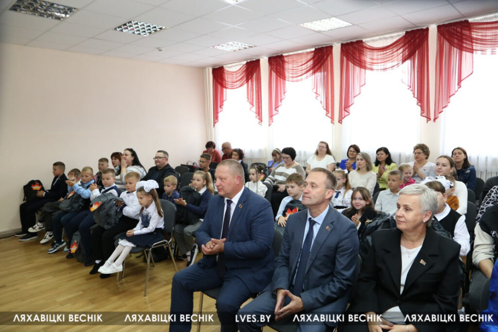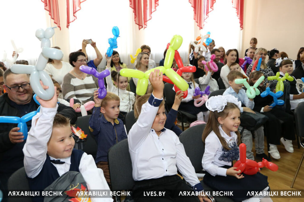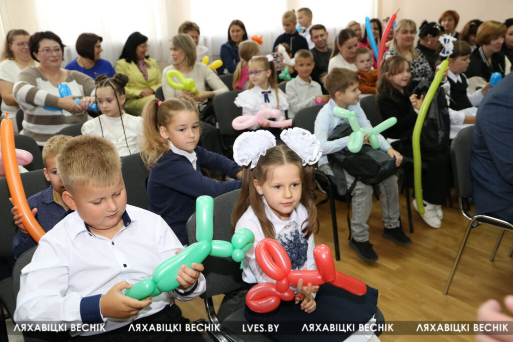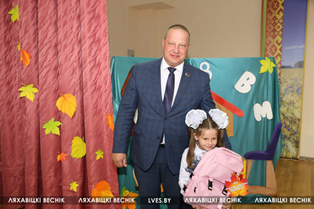Председатель Ляховичского райисполкома Николай Мороз и заместитель председателя райисполкома Олег Третьяк вручили мальчикам и девочкам школьные ранцы с канцелярскими принадлежностями.
