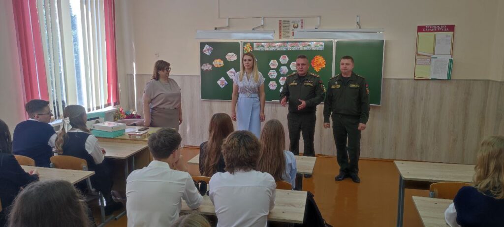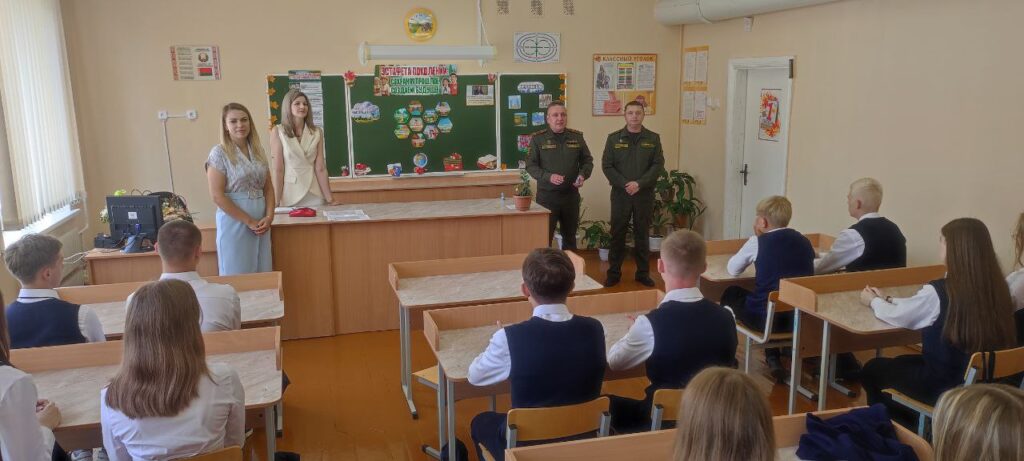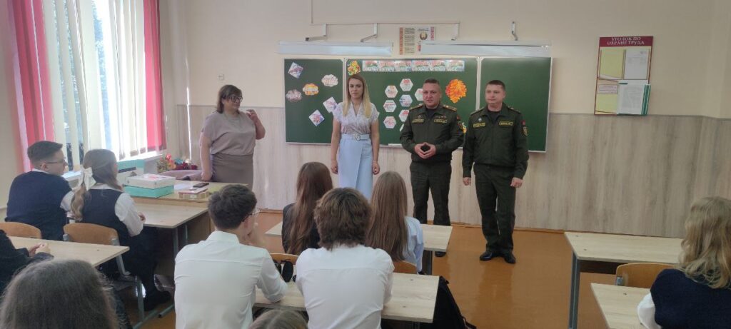 230-го общевойскового полигона подполковник Дмитрий Кисель и начальник клуба 230-го общевойскового полигона прапорщик Павел Цуприк поздравили с Днём знаний учащихся военно- патриотического клуба «Форпост» СШ №2 и выпускные классы СШ №1.