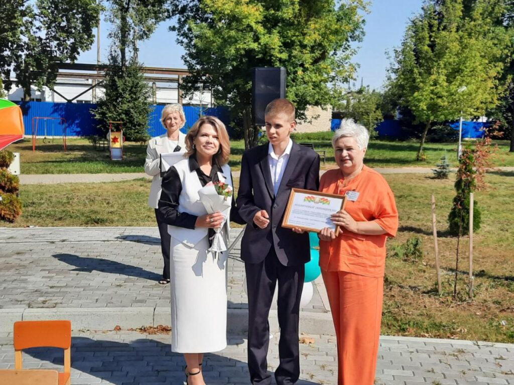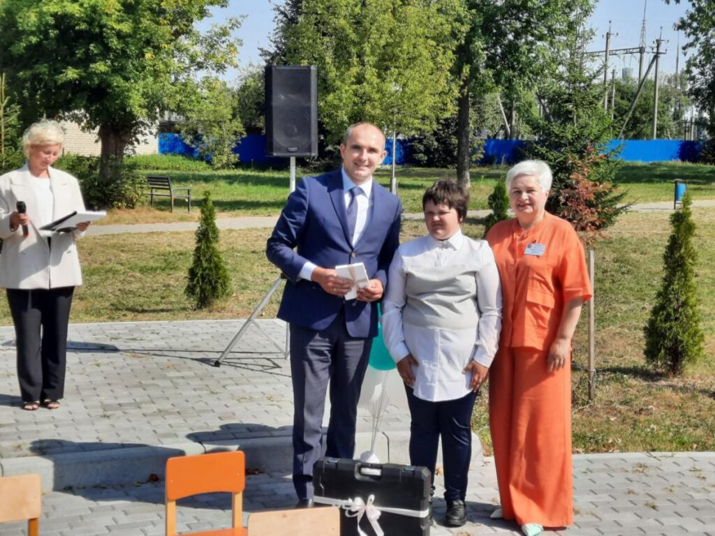 Начальник отдела по образованию Ляховичского райисполкома Мария Сороковик поздравила детей, педагогов и родителей с началом нового учебного года и вручила центру сертификат на приобретение спортивного инвентаря.