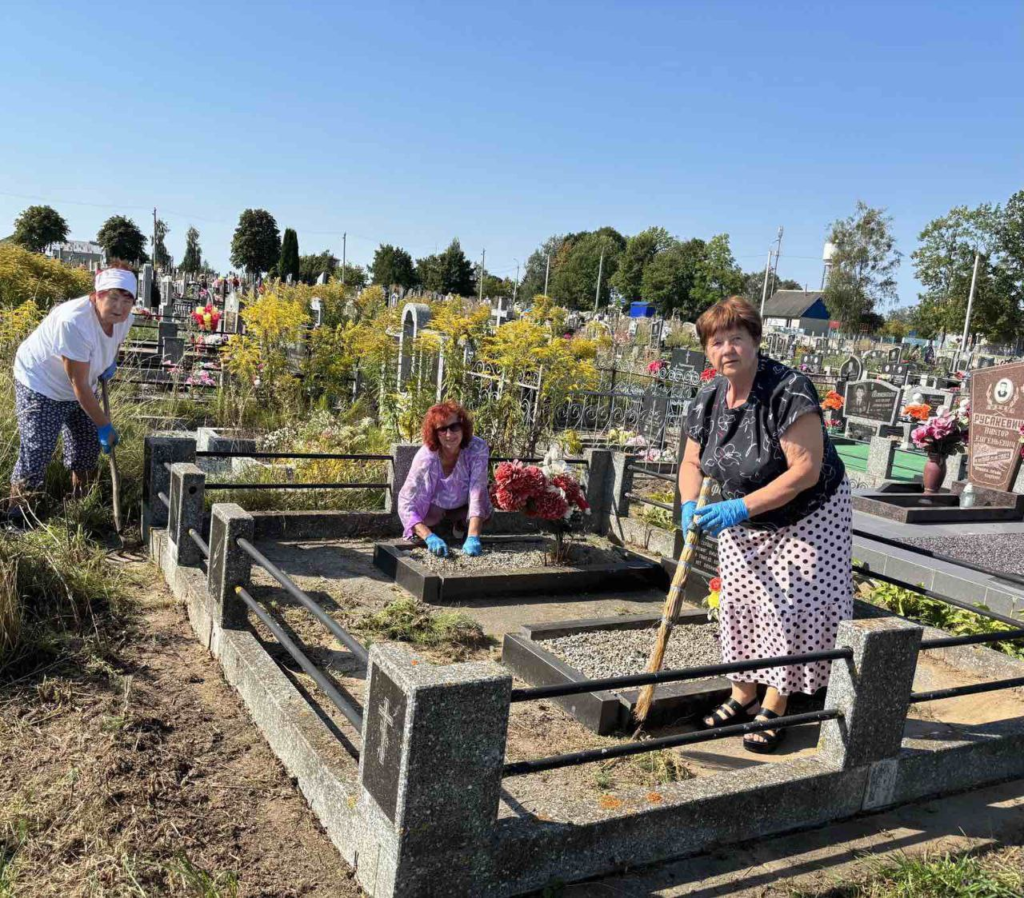 В Год благоустройства и 80-летия Победы советского народа в Великой Отечественной войне специалисты и посетители отделения комплексной поддержки в кризисной ситуации и дневного пребывания для граждан пожилого возраста Ляховичского ТЦСОН провели уборку места захоронения инвалида войны Андрея Петровича Афанасьева.