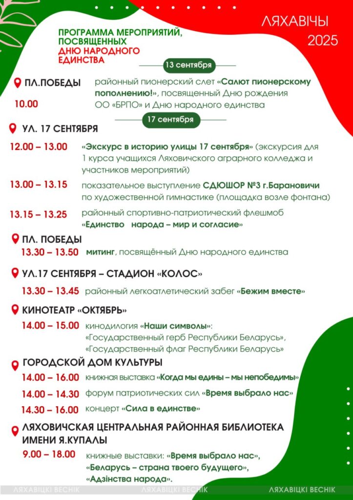 Грамадства Навіны Ляховичи: стала известна программа мероприятий, посвященных Дню народного единства 12/09/2025 248 redakcyja