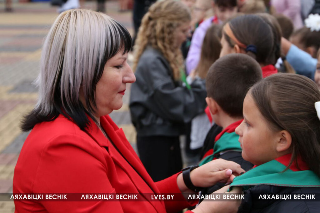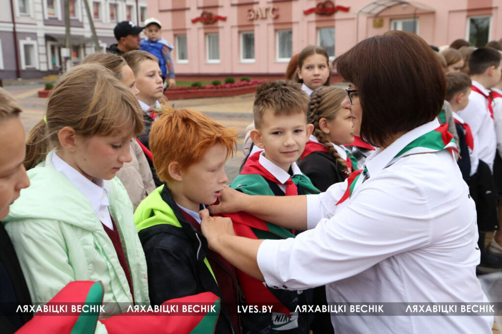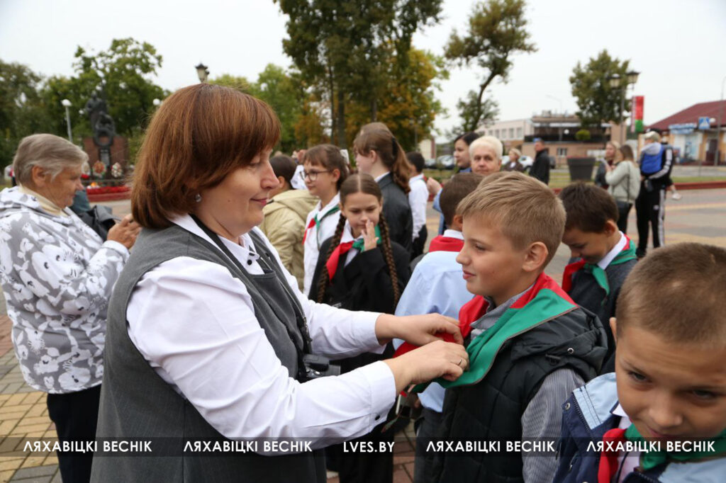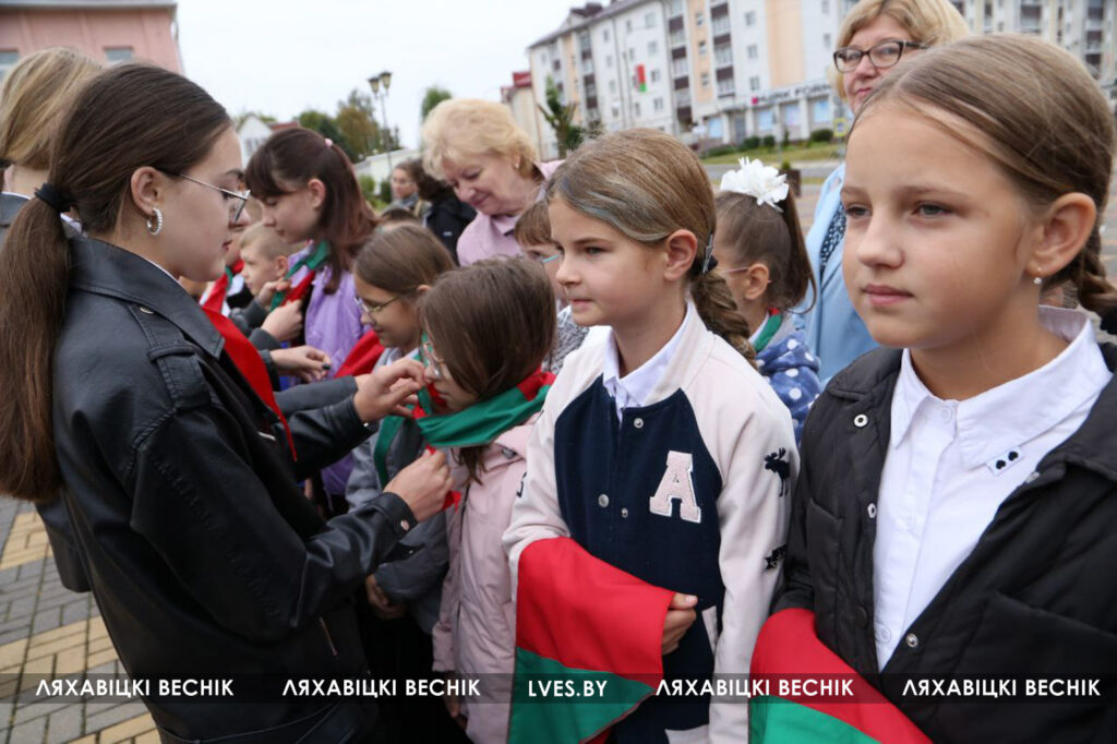 На площади Победы в райцентре собрались представители всех пионерских дружин учреждений образования Ляховиччины. Более 120 октябрят сегодня приняты в пионеры.