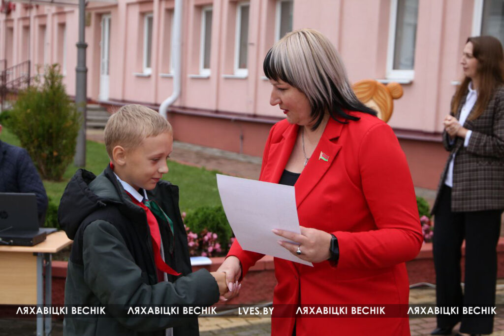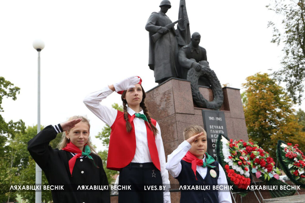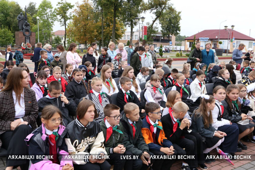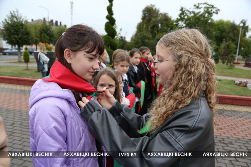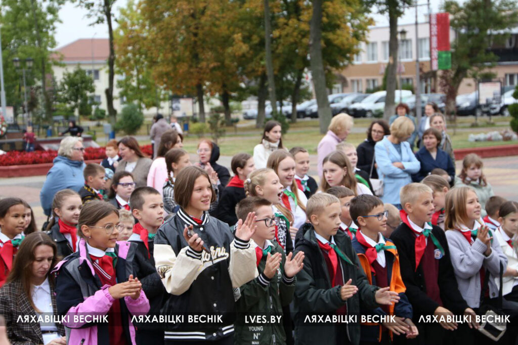 На площади Победы в райцентре собрались представители всех пионерских дружин учреждений образования Ляховиччины. Более 120 октябрят сегодня приняты в пионеры.