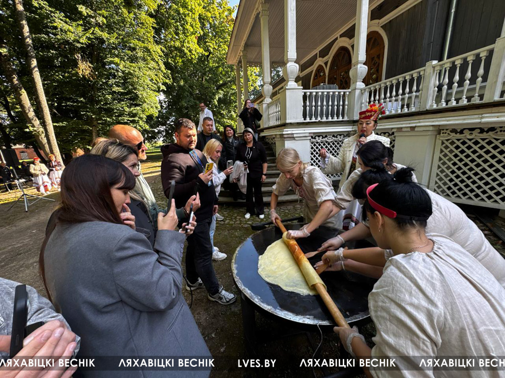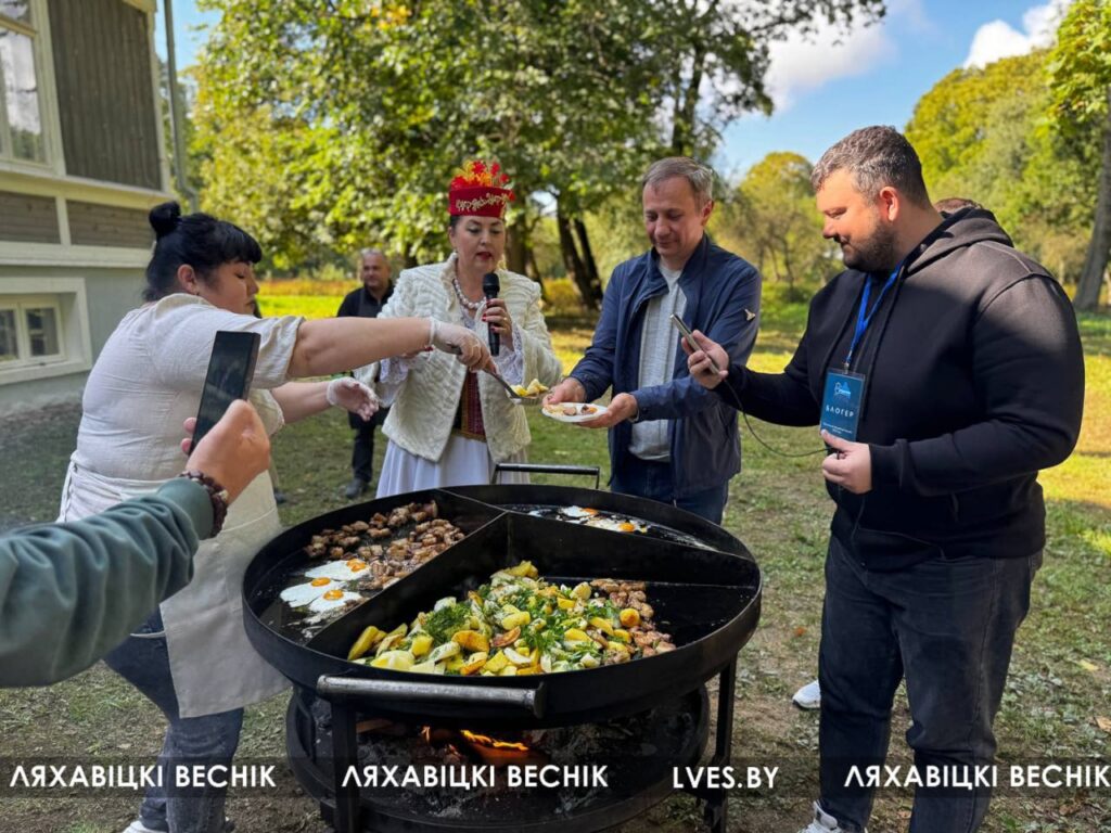Кроме того медиатуристов ждали «Турыстычная патэльня» и фирменные блины от ляховичских коммунальников. Здесь сложно описать словами, нужно пробовать и наслаждаться белорусской кухней!