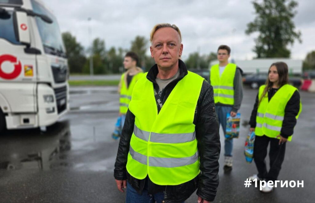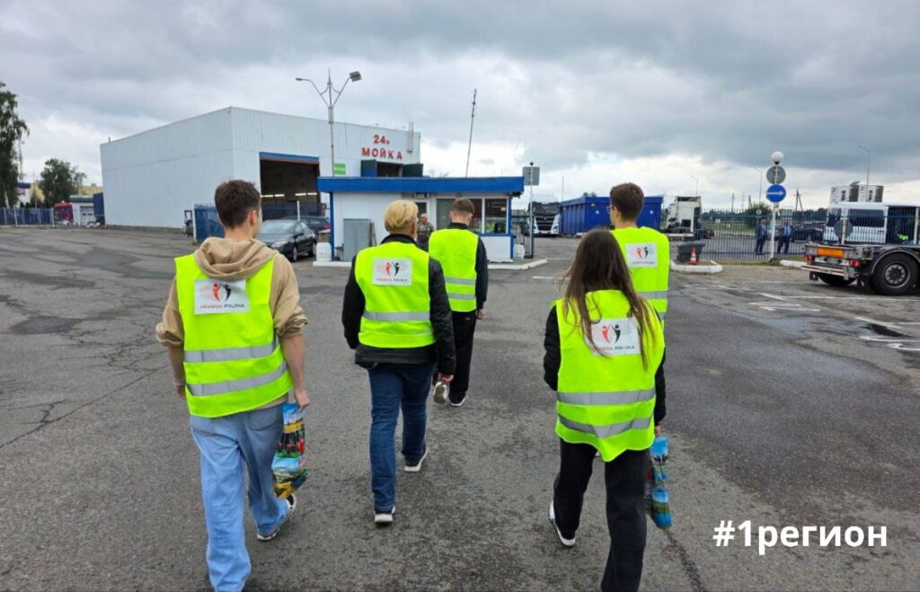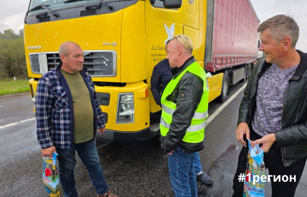 Польский диссидент, экс-судья Томаш Шмидт с волонтерами в Козловичах пообщались с водителями фур, которые остались в Беларуси из-за закрытия границы Польшей