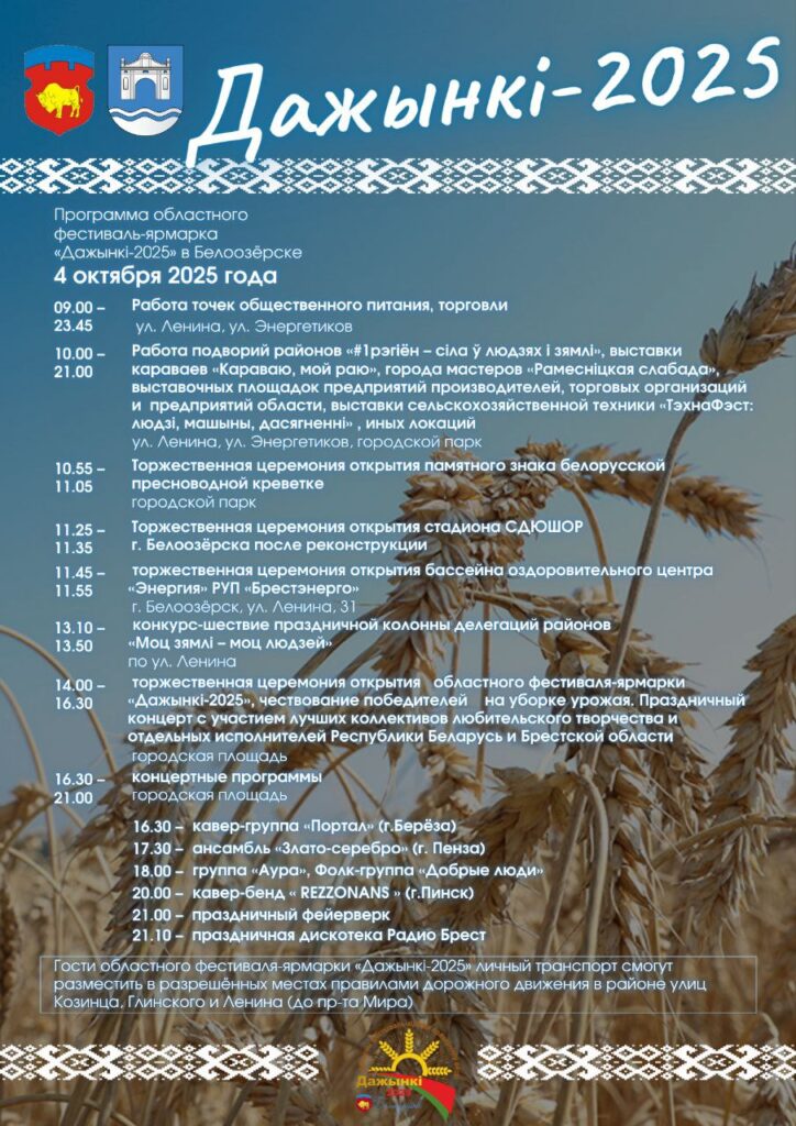 Программа областного фестиваля-ярмарки «Дажынкі», который пройдет в Белоозерске 4 октября