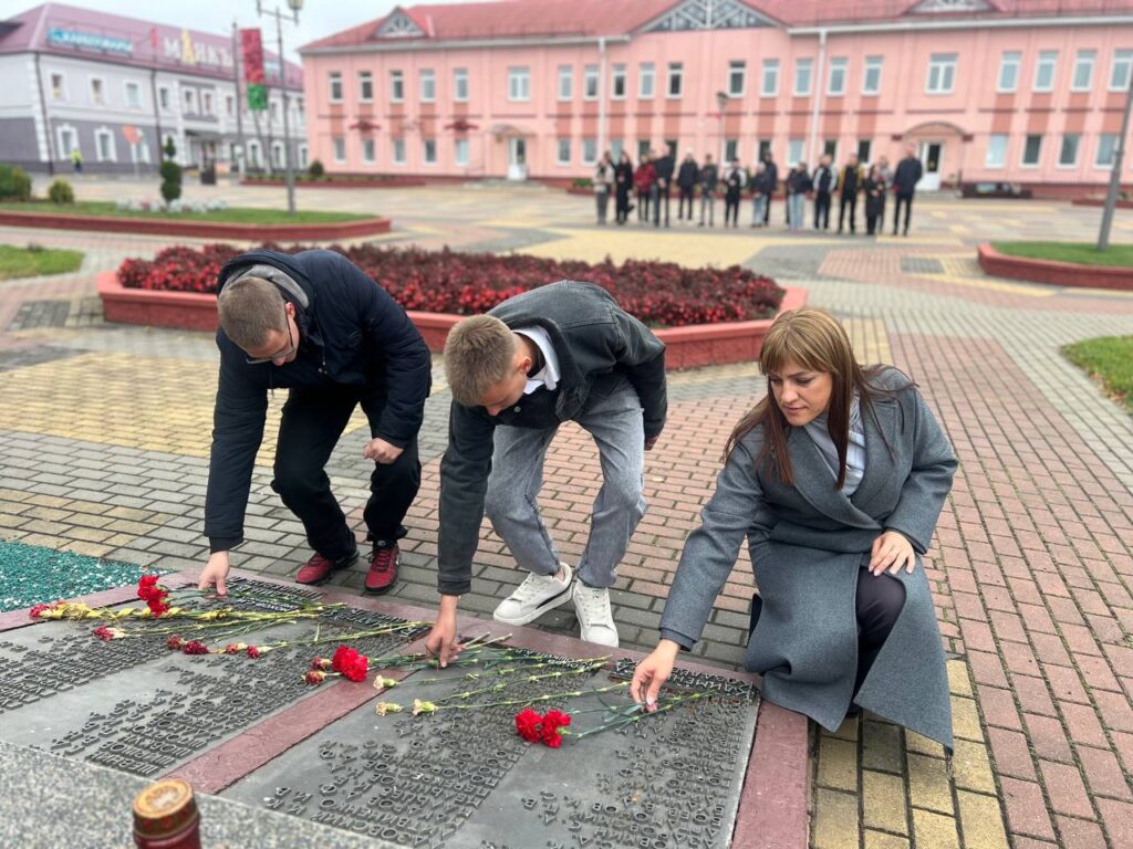 В год 80-летия Великой Победы молодёжь возложила цветы к памятнику на братской могиле воинов-освободителей на площади Победы в райцентре.