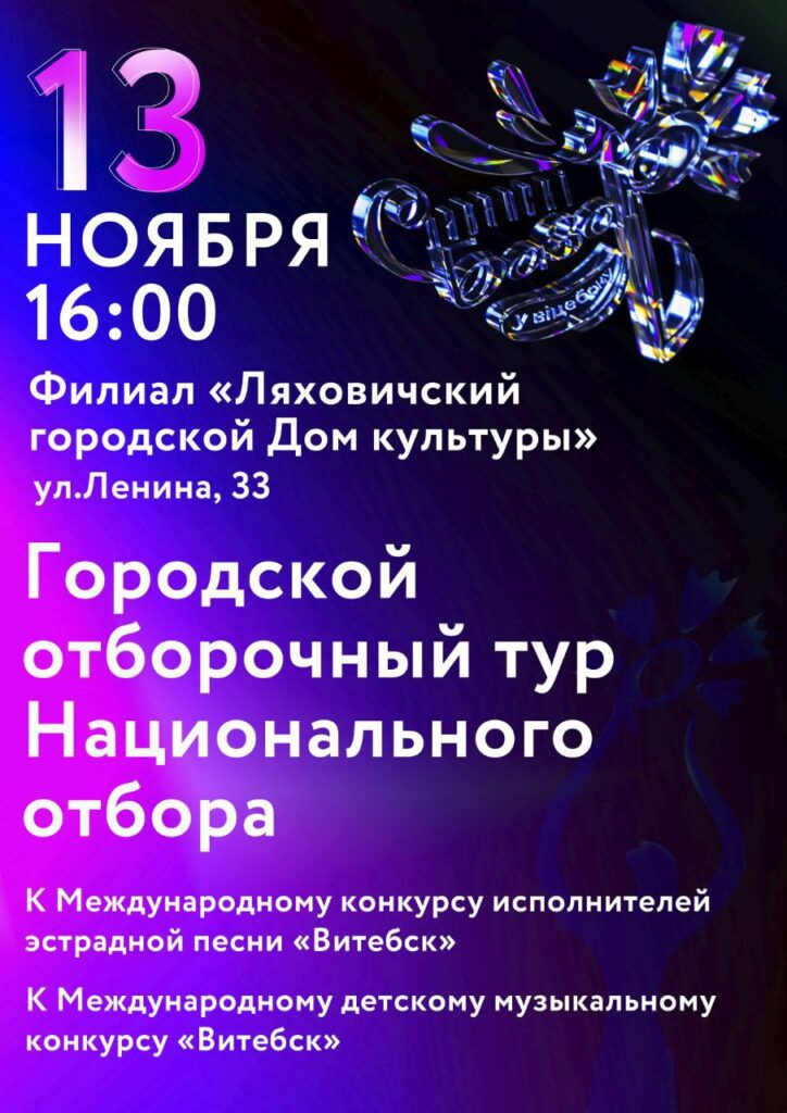 В филиале «Ляховичский городской Дом культуры» состоится городской отборочный тур к Международному конкурсу исполнителей эстрадной песни «Витебск» и Международному детскому музыкальному конкурсу «Витебск»