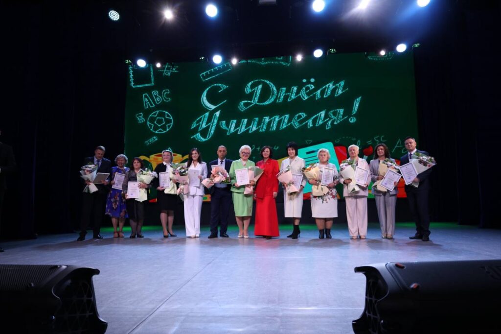 Поздравление с Днём учителя от главы области Петра Пархомчика в торжественной обстановке передали заместитель председателя облисполкома Виктор Рафалович и начальник главного управления по образованию Наталья Калиновская.