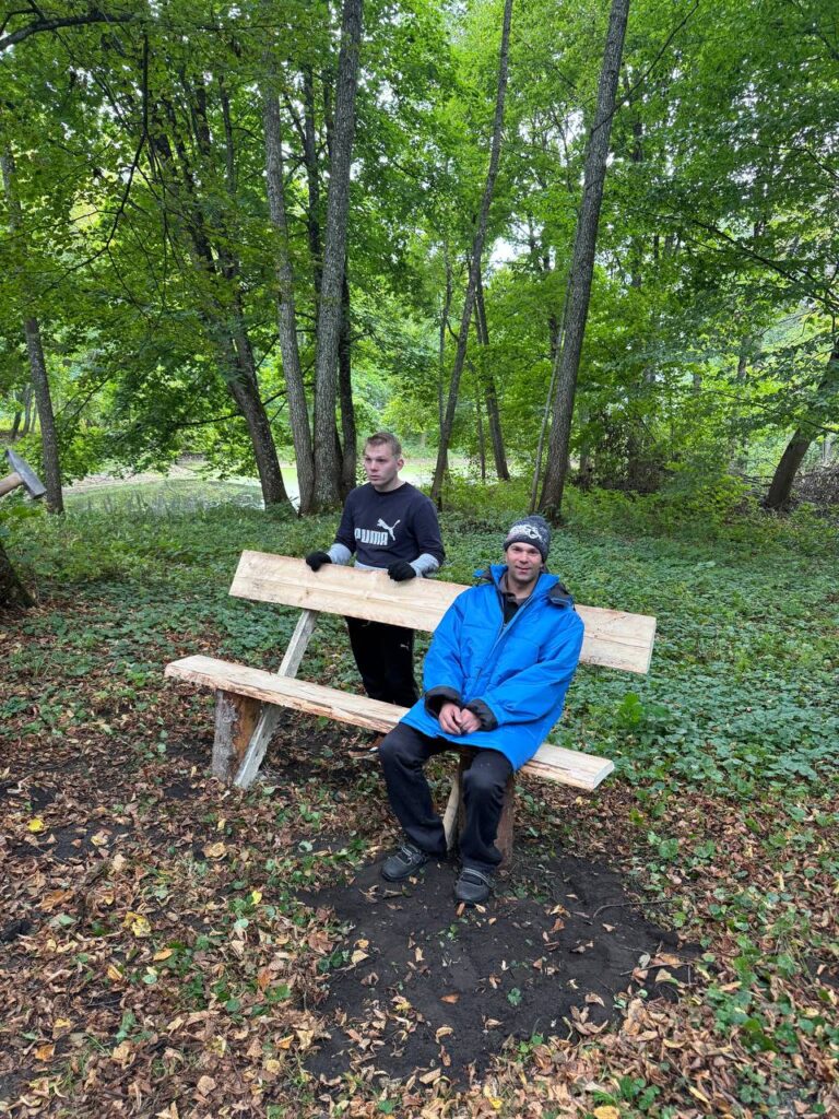 В парке были установлены 8 скамеек, 3 столика, подкрашены информационные стенды, очищены памятники.