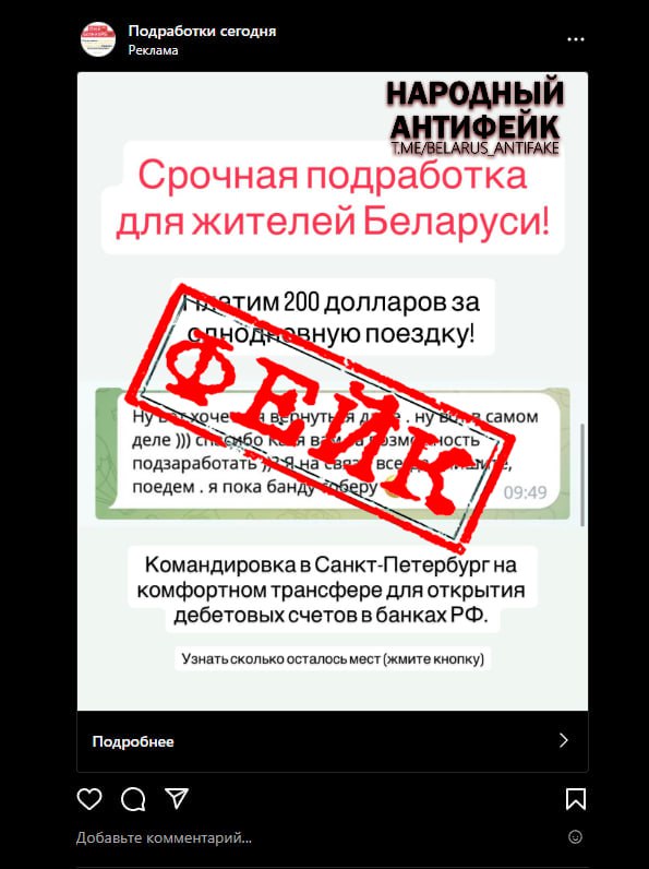 В интернете появляется всё больше объявлений о «срочной и легальной» подработке для граждан Беларуси. Мошенники привлекают людей заманчивыми условиями: комфортабельный трансфер, экскурсии по Питеру и оплата в размере 200 долларов. Однако стоит задуматься: в чём подвох?
