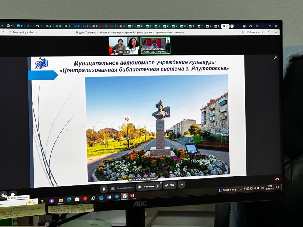 Онлайн-встреча за круглым столом «Мосты культуры: диалог без границ» состоялась 16 октября 2025 г. для представителей библиотечной сферы городов-побратимов – Ляховичей и Ялуторовска (Тюменская обл., РФ).