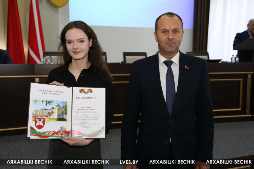 На этот раз Благодарственных писем Ляховичского райисполкома и Благодарности председателя райисполкома, а также Благодарности председателя Ляховичского райсовета депутатов наши земляки удостоены за активное участие в областном фестивале-ярмарке «Дожинки-2025» в Белоозёрске.