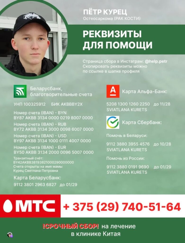 17 октября в Национальной школе красоты с большим успехом прошел благотворительный хоровой концерт «Дарите радость людям» в поддержку Петра Курца — парня из Ляховичского района , который уже три года борется с онкологией и в настоящее время проходит дорогостоящее лечение в Китае