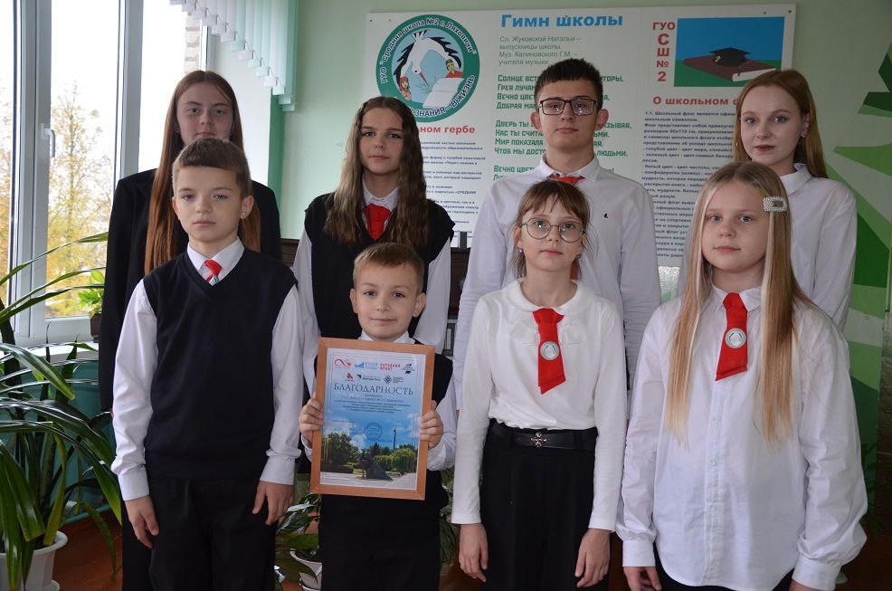 Учащиеся средней школы № 2 г. Ляховичи отмечены благодарностью Местного благотворительного фонда имени Алексея Талая за участие в акции по сбору и передаче монет для трилогии памятников «Живая память благодарных поколений», установленных в Минске, Брестской крепости и Москве, за верность традициям и любовь к Родине!