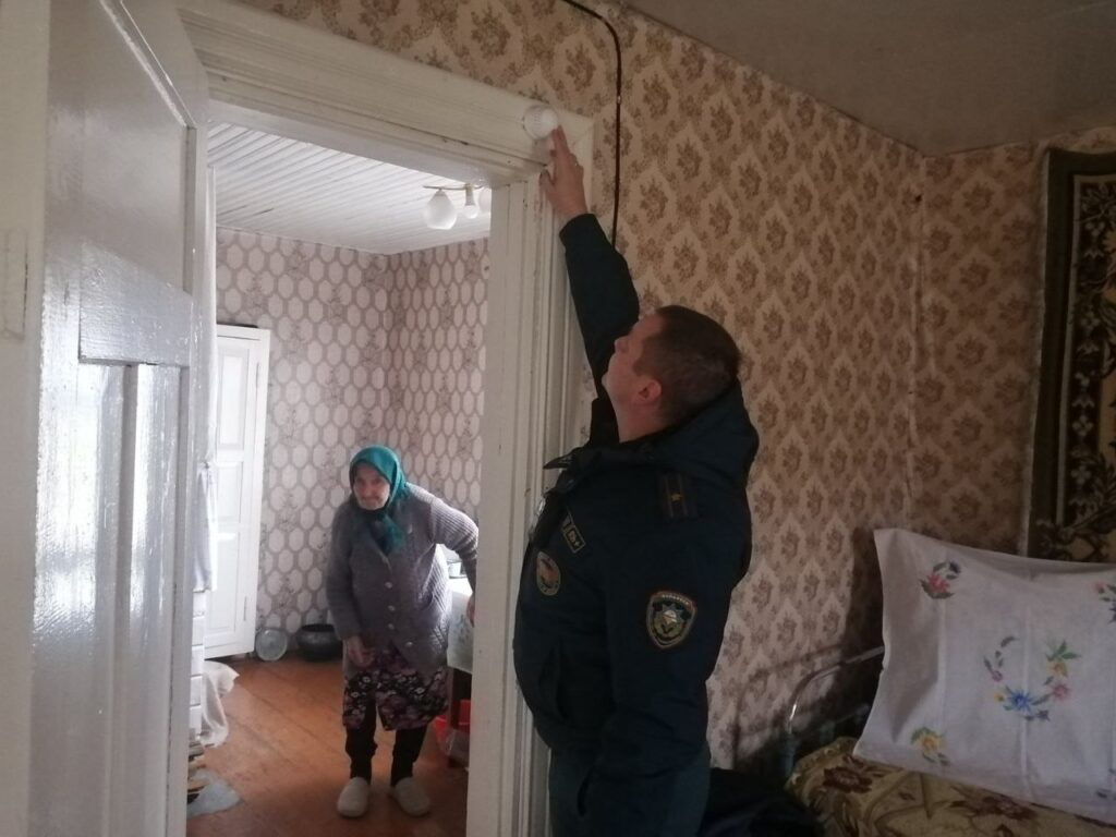 Спасатели проверили состояние печного отопления, оценили целостность дымоходов, отсутствие трещин и прогаров, осмотрели электропроводку на предмет повреждений, самовольных подключений, перегрузки сети, уделили внимание наличию и исправности автономных пожарных извещателей.