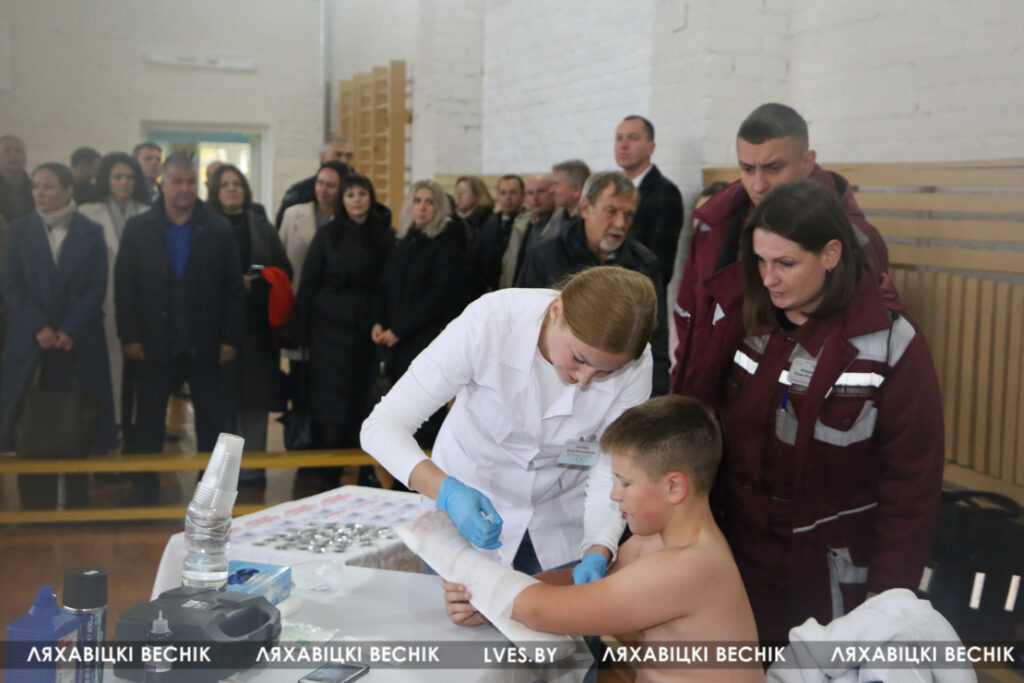 В ДЮСШ Ляховичского района участники семинара наблюдали практические аспекты реализации требований Директивы №1. Отрабатывались действия на трёх локациях: при получении травмы на тренировке, при задымлении здания, при обнаружении на стадионе подозрительного бесхозного предмета.
