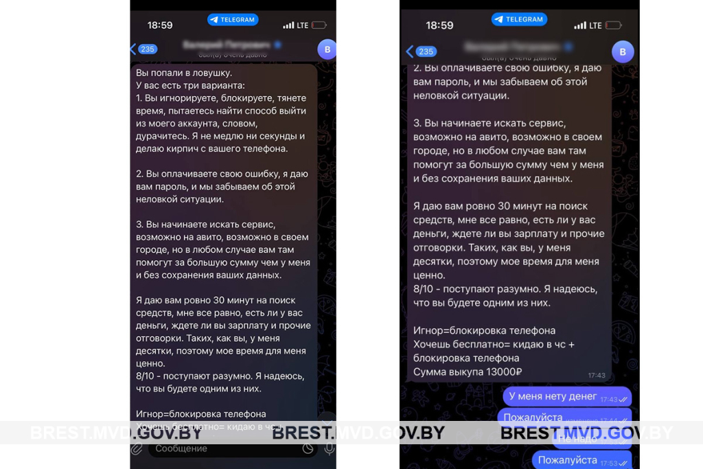 В оперативно-дежурную службу Барановичского ГОВД обратилась 19-летняя местная жительница с заявлением о вымогательстве., сообщает https://brest.mvd.gov.by