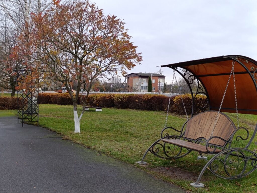 В аг.Русиновичи Начевского сельсовета участники выездной встречи побывали на месте реализации гражданской инициативы по установке малых архитектурных форм в рамках районного праздника «Дожинки-2025».
