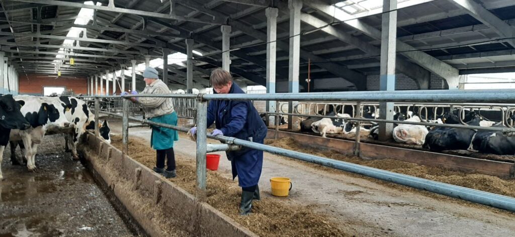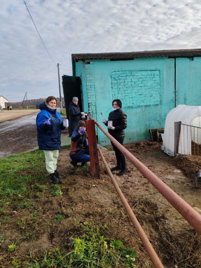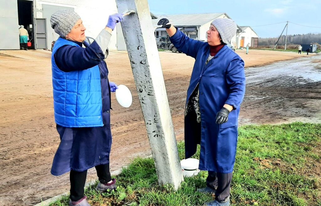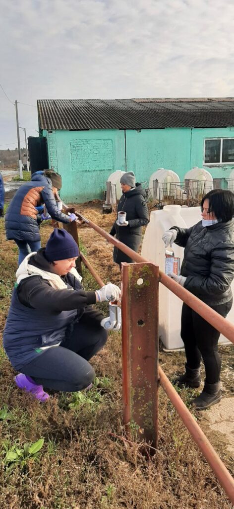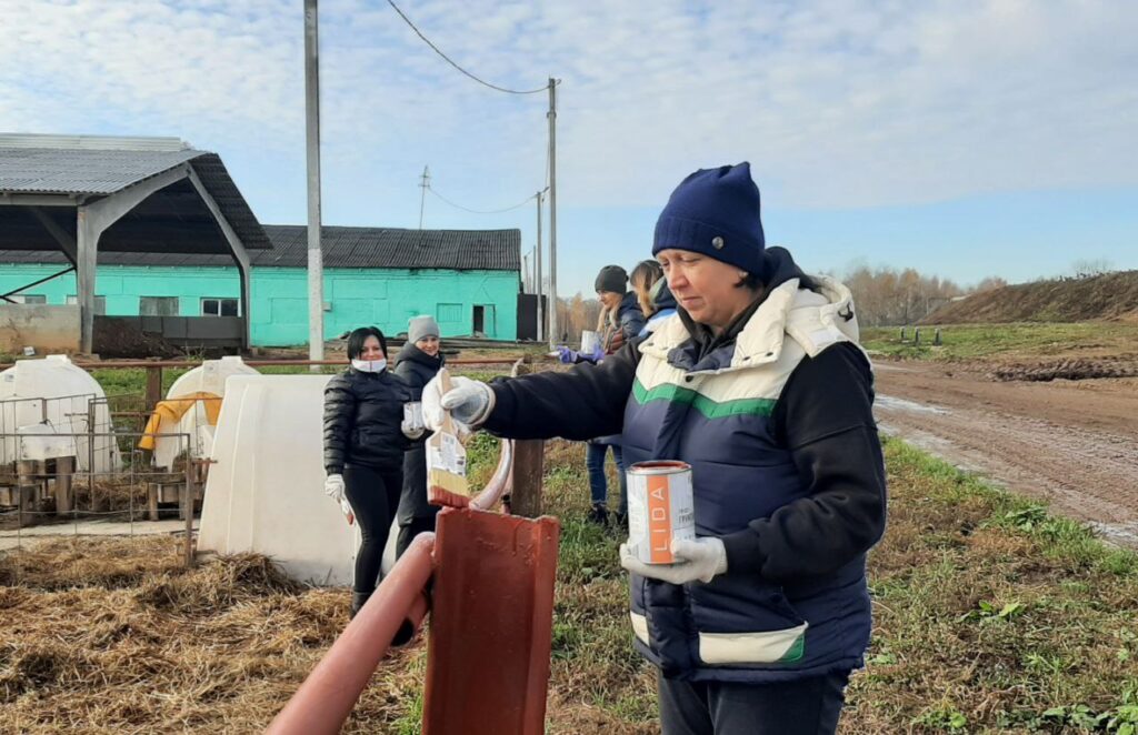 Установлены столбики ограждения вдоль проезжей части дороги, покрашены ограждение выгульных двориков, стойловые рамы, убрана территория фермы.