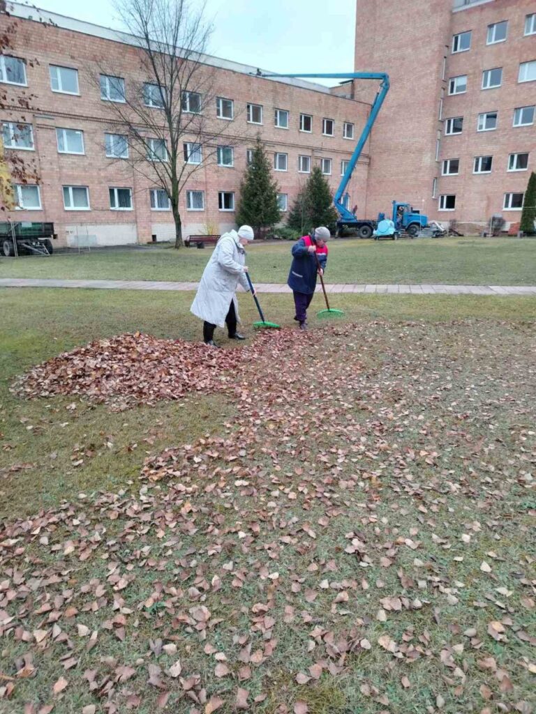 Работники разных подразделений Ляховичской райбольницы продолжают работы по благоустройству подведомственной территории