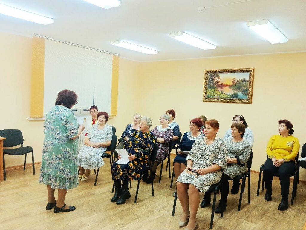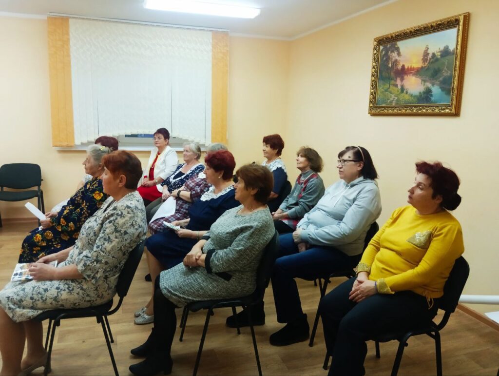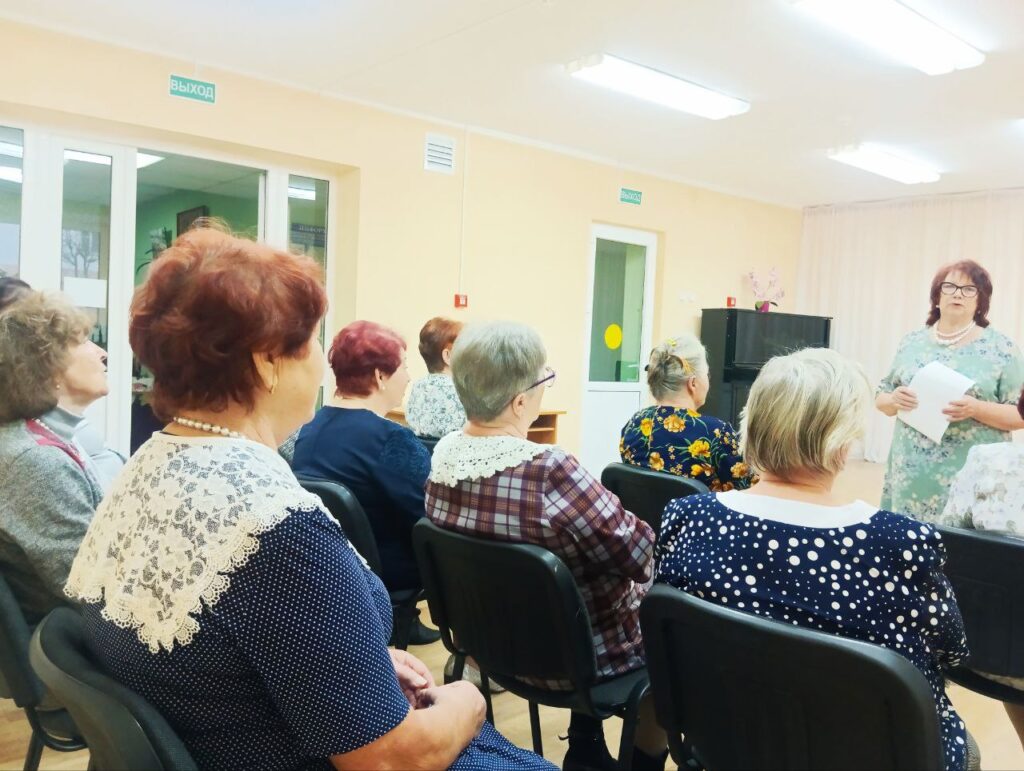Земляки золотого возраста смогли послушать музыку и исполнить песни прошлых лет, посмотреть вместе чёрно-белые фильмы и записи с семейными торжествами. Вечер отдыха для пожилых людей — это хорошее времяпровождение, где учитываются интересы и предпочтения каждого человека.