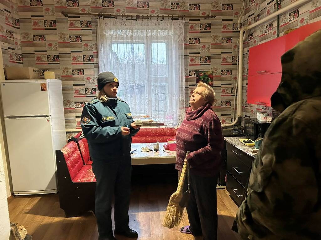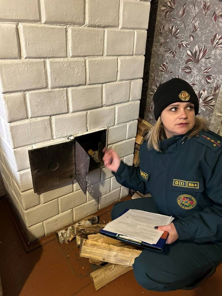 При посещении домовладений, спасатели в первую очередь обращали внимание на состояние печного отопления, разъясняли, что притопочный лист из негорючих материалов убережет от возгораний от случайно выпавшего уголька.