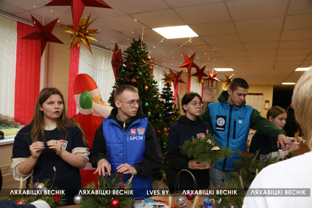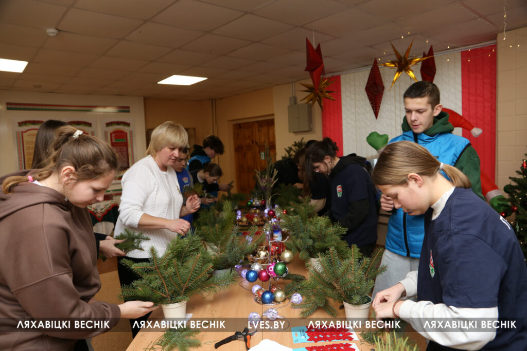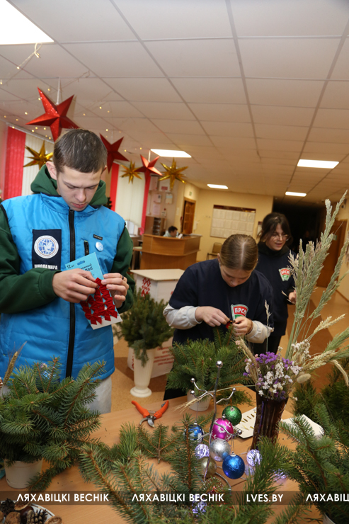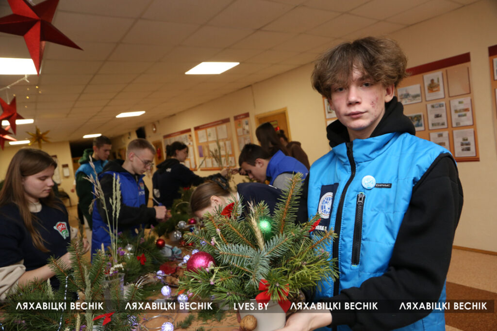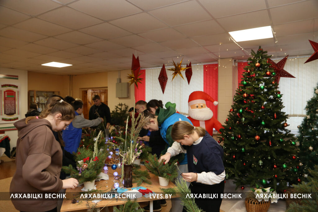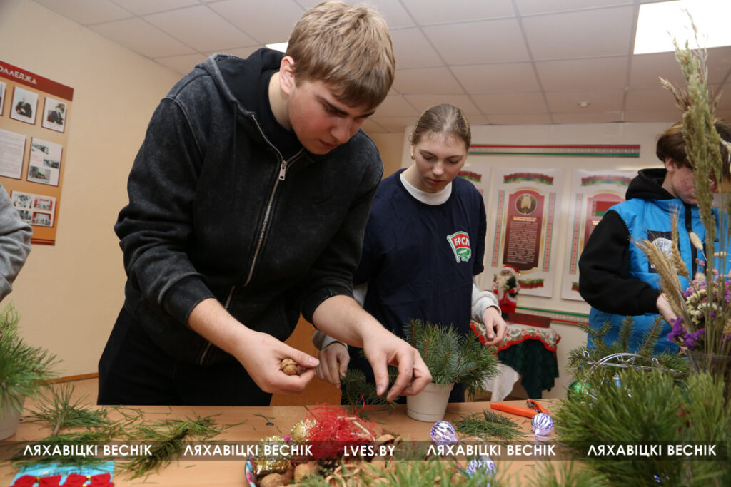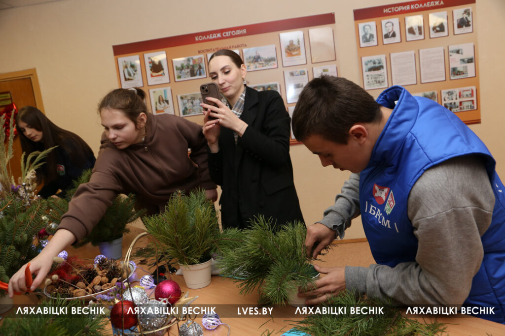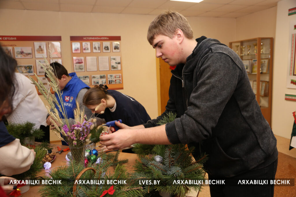 В Ляховичском аграрном колледже сегодня работала мастерская по изготовлению ёлочных композиций. Дизайнерами и флористами стали педагоги и учащиеся группы лесного хозяйства, активисты БРСМ, юные миротворцы, директор агроколледжа Ирина Приступа-Юник и её заместитель Татьяна Третьяк, первый секретарь районной организации БРСМ Анастасия Демидович. Ветки елок и сосны предоставил лесхоз.