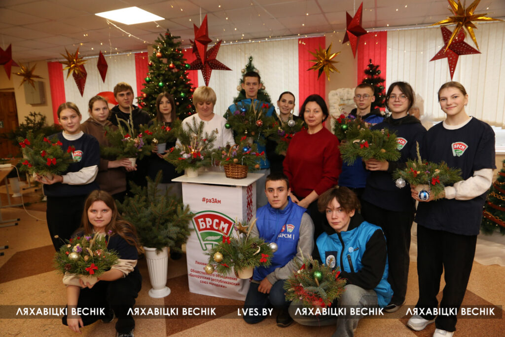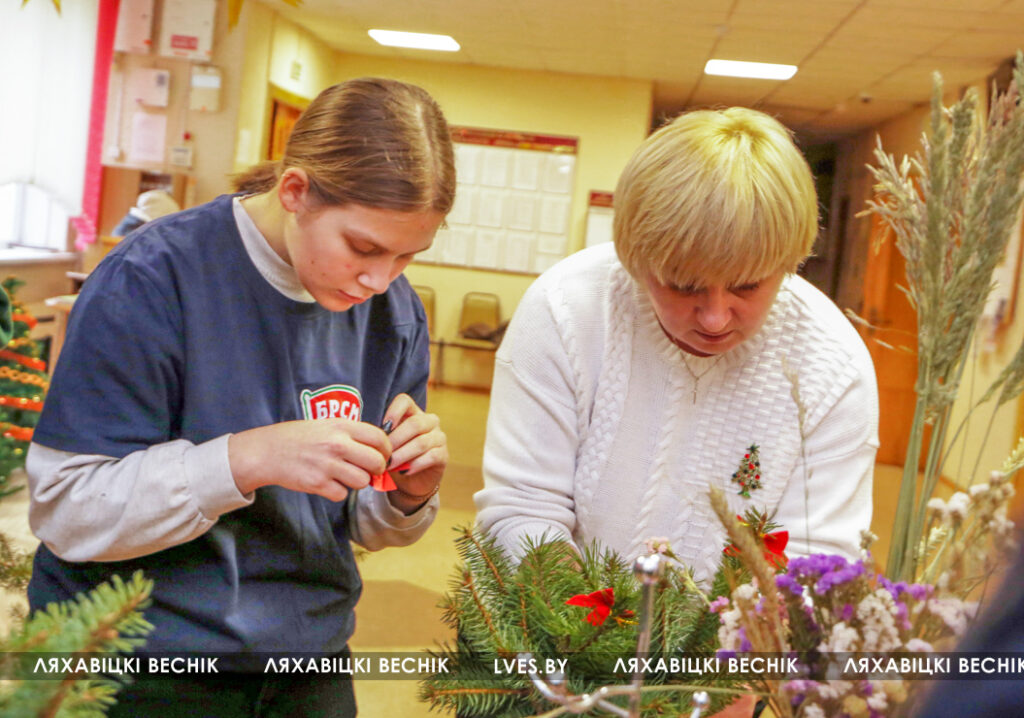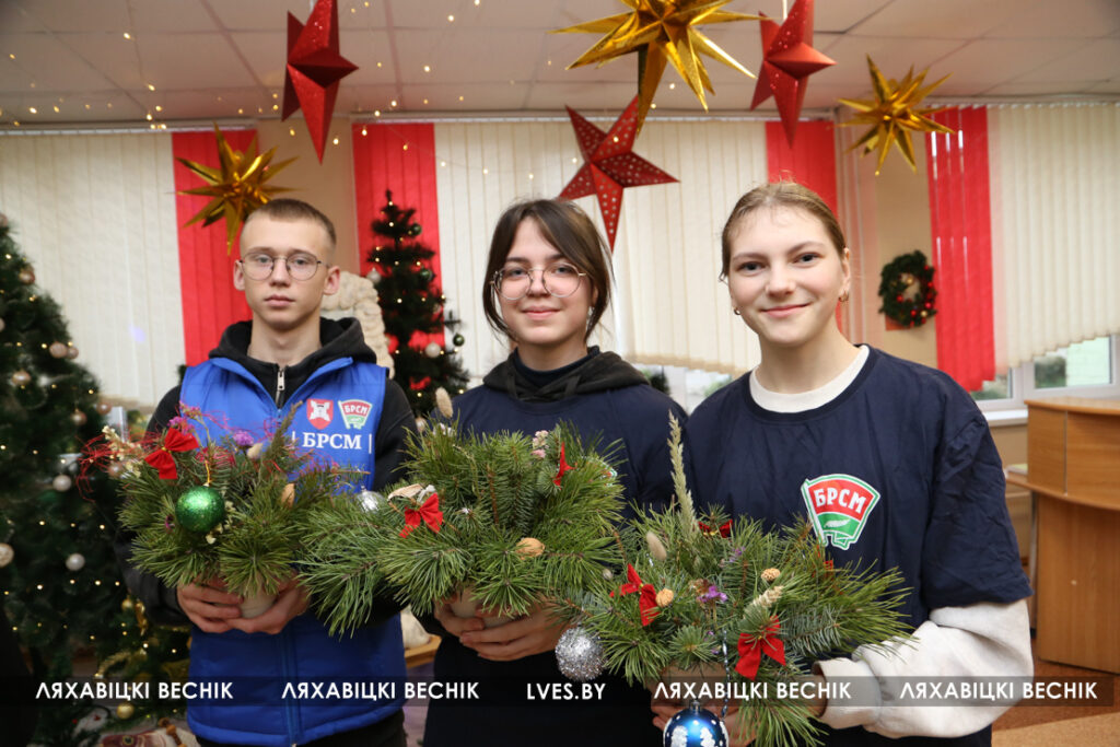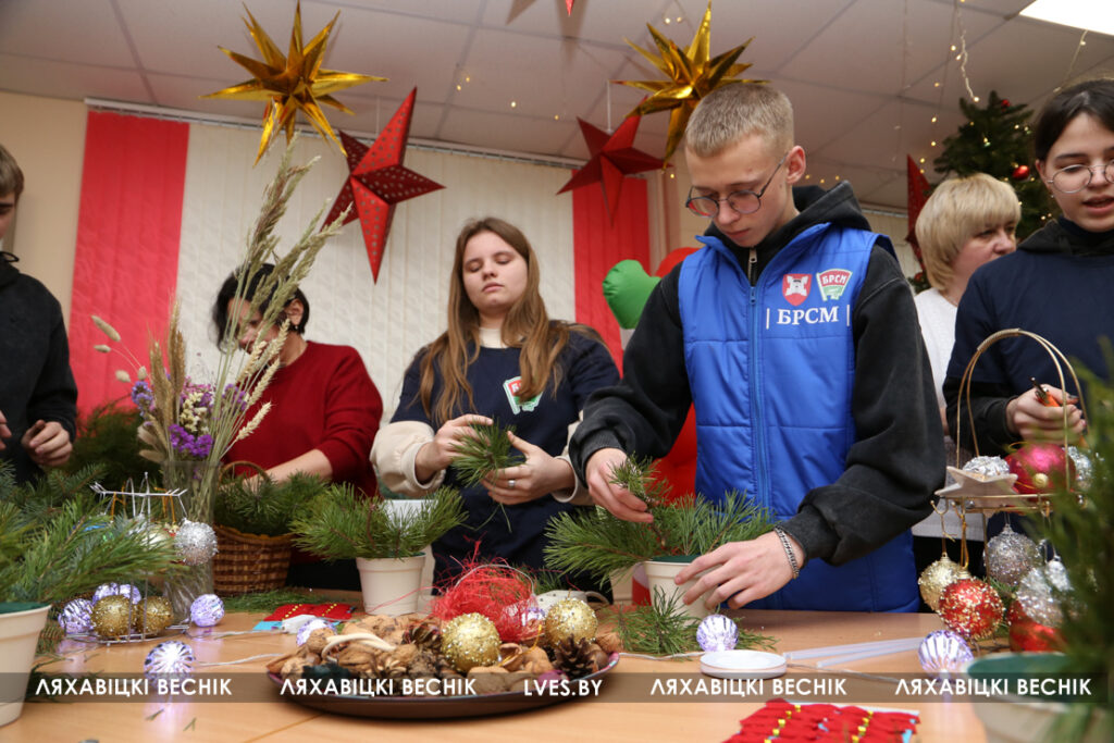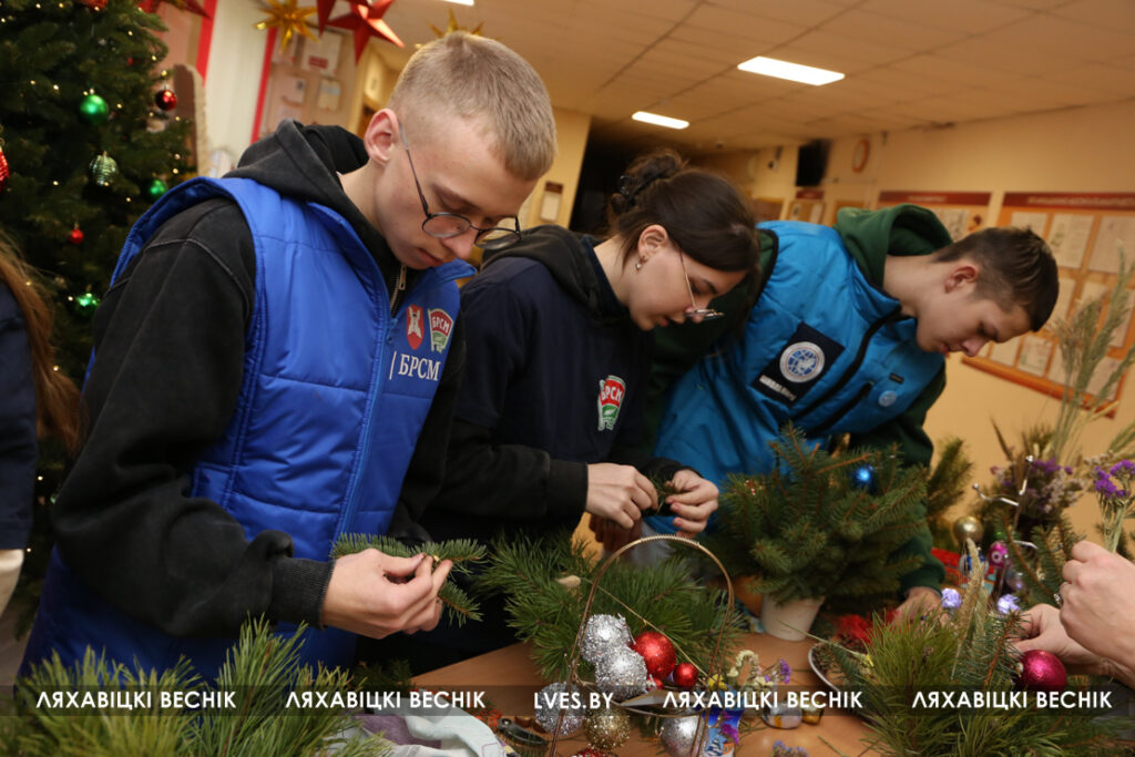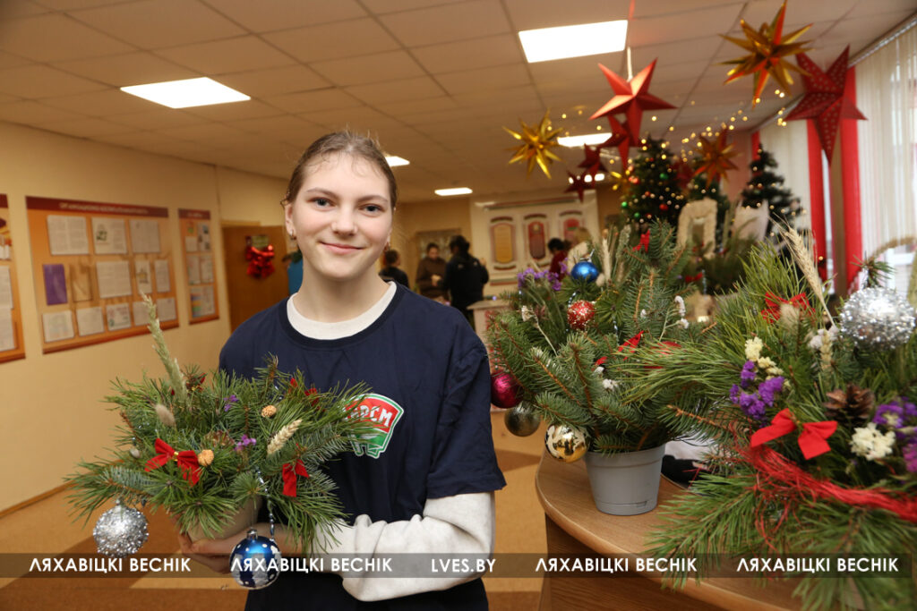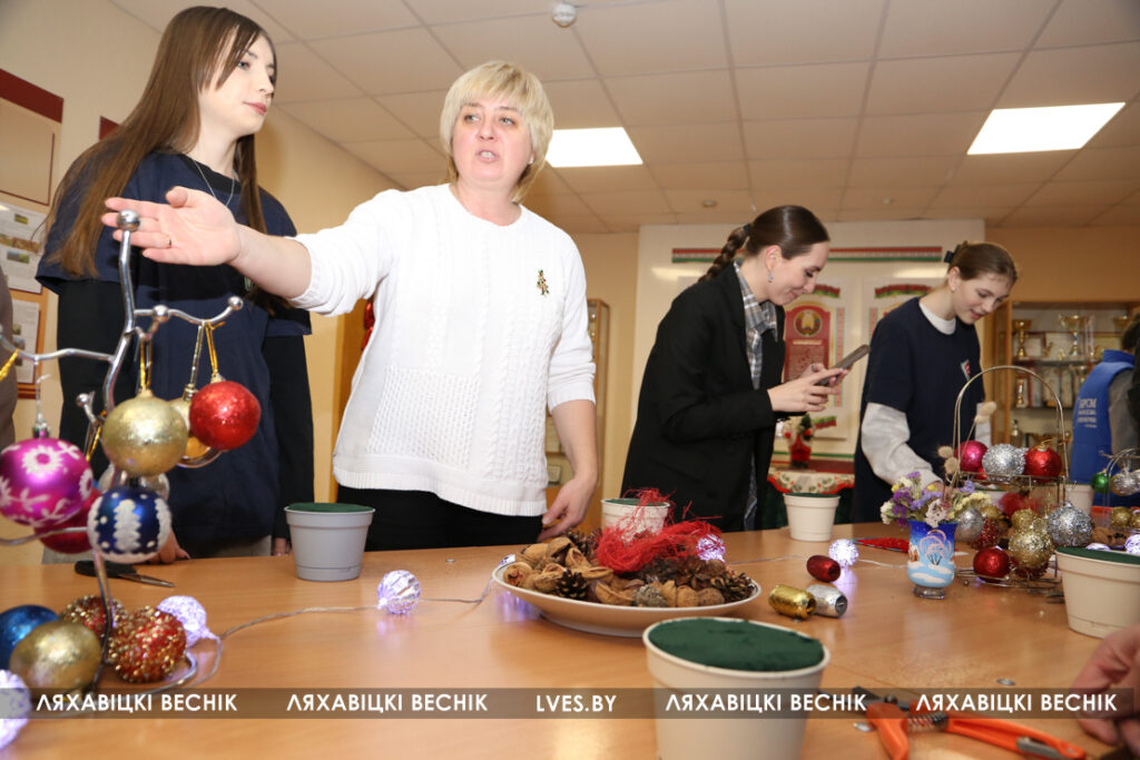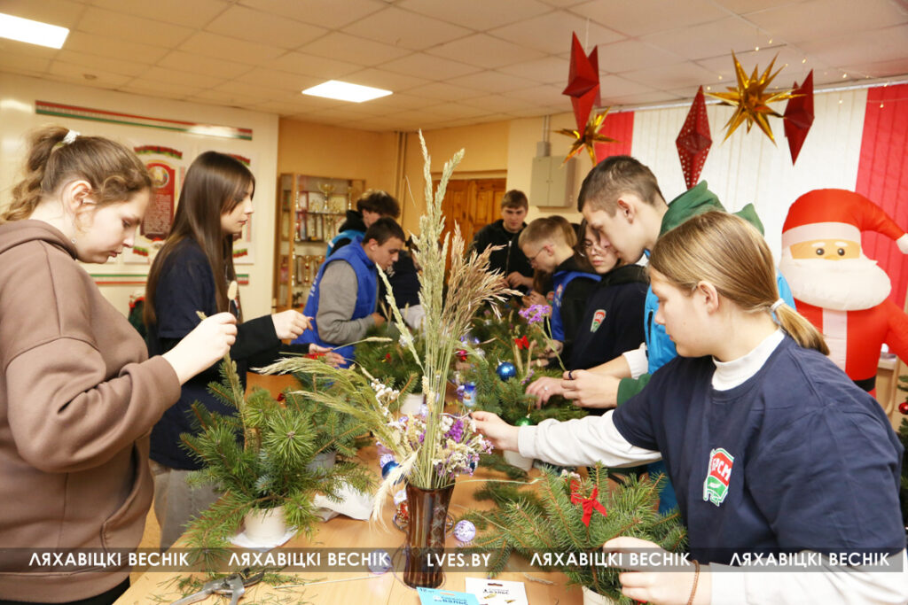 В Ляховичском аграрном колледже сегодня работала мастерская по изготовлению ёлочных композиций. Дизайнерами и флористами стали педагоги и учащиеся группы лесного хозяйства, активисты БРСМ, юные миротворцы, директор агроколледжа Ирина Приступа-Юник и её заместитель Татьяна Третьяк, первый секретарь районной организации БРСМ Анастасия Демидович. Ветки елок и сосны предоставил лесхоз.