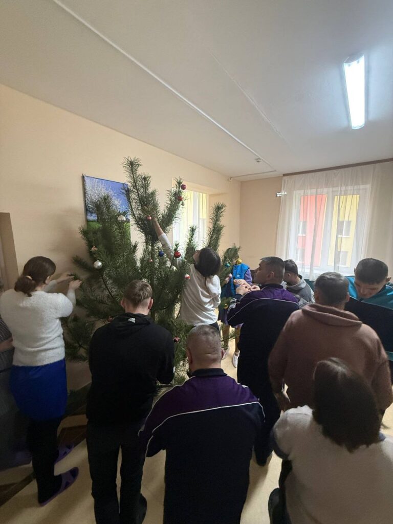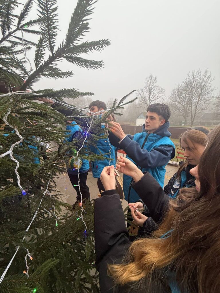 Совместно с проживающими юные миротворцы украсили новогодние деревья на улице в рекреационной зоне.
