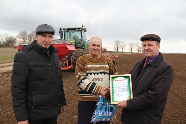 СВК «Ляхавіцкі» завяршыў сяўбу ранніх яравых збожжавых і прыступіў да сяўбы аднагадовых, якія пойдуць на «зялёны канвеер» для грамадскага статка. З першага дня сяўбы на палетках пасяўны агрэгат Леаніда Пішча. Механізатар не навічок – працуе 20 гадоў, магутны «ДжонДзір» «асядлаў» адным з першых у раёне. Начальнік Русінавіцкага вытворчага ўчастка Іван Юнік сцвярджае, што такіх механізатараў, як Леанід Пішч, трэба яшчэ пашукаць. Ён прафесіянал, адказны, абавязковы чалавек, якому ў гаспадарцы давяраюць самыя складаныя работы. Райкам прафсаюза работнікаў аграпрамысловага комплексу сёлета прызнаў яго лепшым на сяўбе. Старшыня райкама прафсаюза Мікалай Вайцешык уручыў перадавіку падзячнае пісьмо і каштоўны падарунак прама ў полі (на здымку).