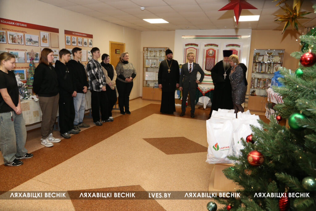Новогоднюю концертную программу подготовили учащиеся и педагоги Ляховичского аграрного колледжа. Радость праздника с ними разделили представители районной власти, районного отделения Белорусской партии “Белая Русь”, представители православного духовенства. Особенно запоминающим моментом стало вручение новогодних подарков колледжанам из категории детей-сирот.
